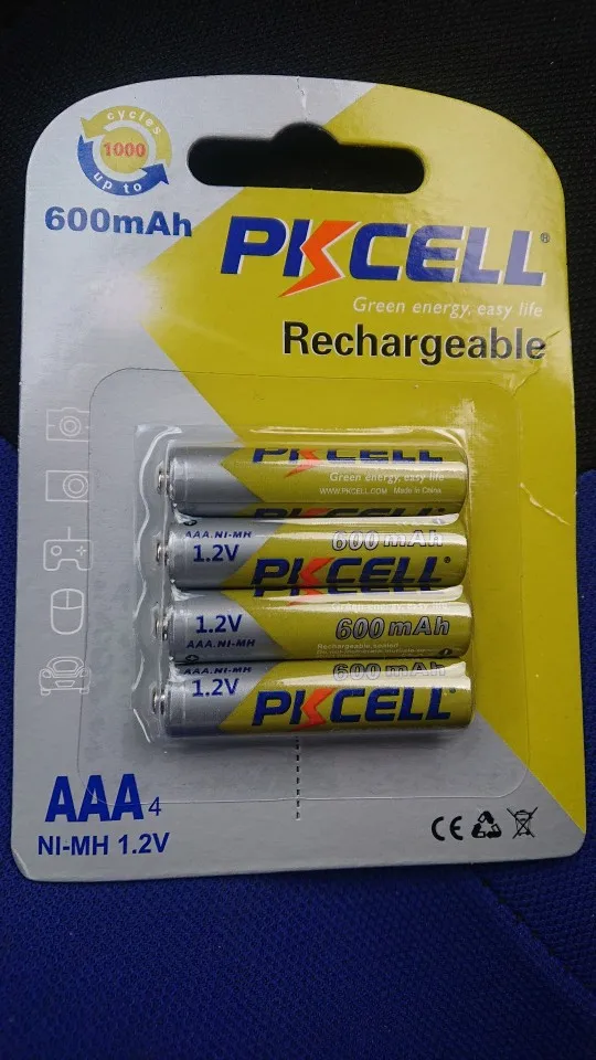 4 шт. PKCELL AAA перезаряжаемые батареи NIMH батарея 600 мАч 1,2 в 3A AAA Ni-MH более 1000 циклов