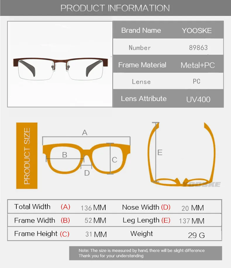 Очки для чтения YOOSKE мужские с защитой от сисветильник, пресбиопические очки с полуоправой из полимерной Асферические стекла, с диоптриями + 1,0, + 1,5, + 2,0, + 2,5