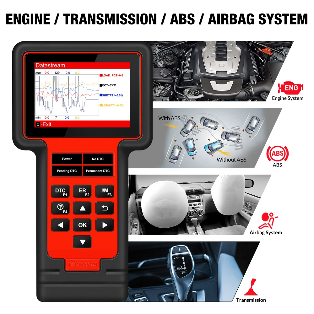 2.Thinkscan 609 диагностический инструмент поддерживает диагностическую функцию для двигателя/коробки передач/ABS/подушки безопасности:
