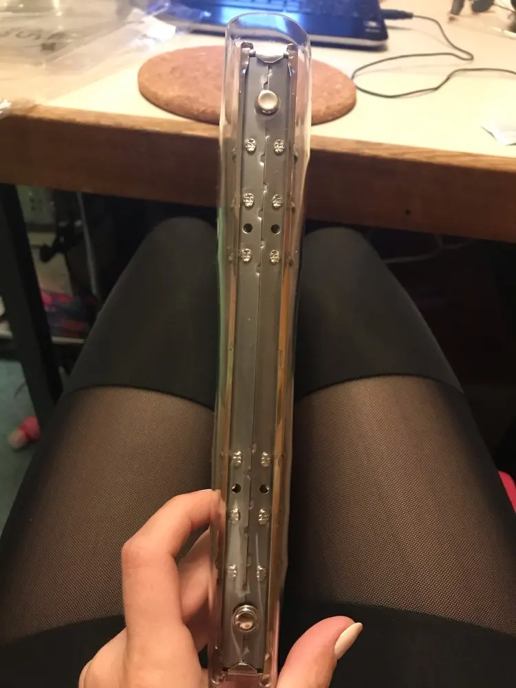 Переплет прибыл с моим другим заказом, но был упакован по-разному в коробке, которая соответствует его форме. Коробка была немного согнута, и на скрепе было немного пыли, в отличие от другого скрепера, который я заказал у того же продавца. Этот Биндер также поставляется с небольшим количеством царапин, которые я не могу удалить. Продукт также отличается от изображения и является более непрозрачным, чем на изображении и не имеет брелока. Моя посылка также была доставлена из Сингапура в США, поэтому было около 0,80 долларов США за иностранную транзакцию, так что это то, что вы также должны иметь в виду при заказе.