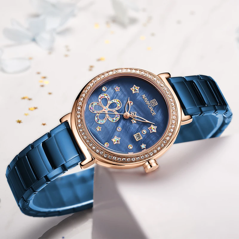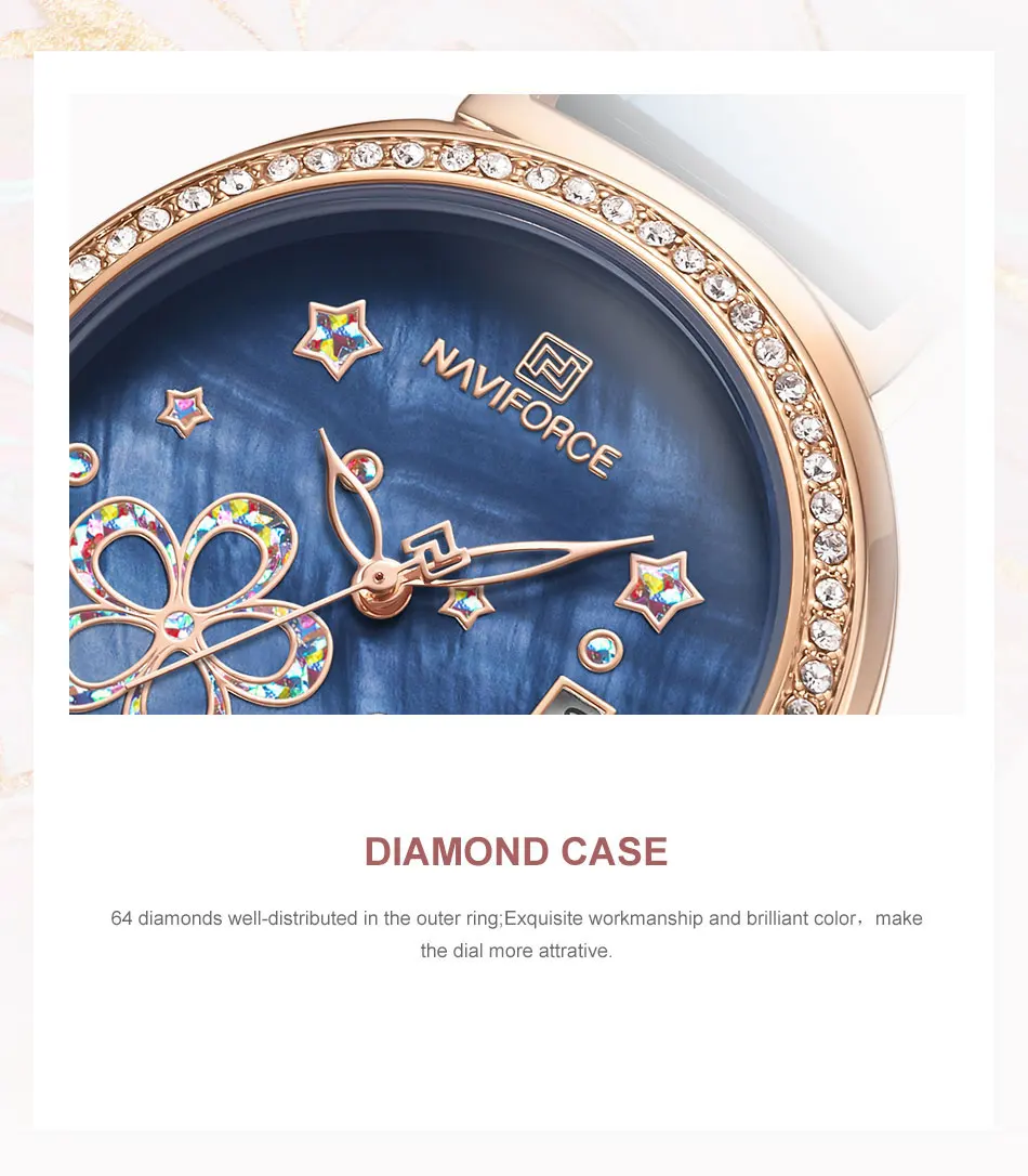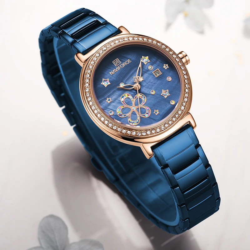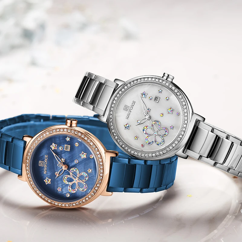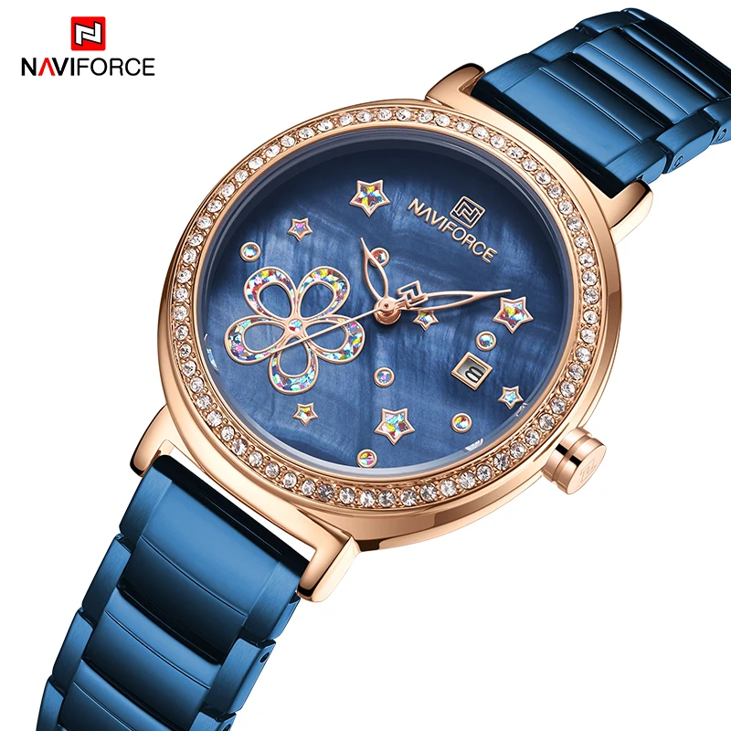 Женские роскошные часы NAVIFORCE Лидирующий бренд женские модные кварцевые часы женские водонепроницаемые наручные часы из нержавеющей стали Дата часы