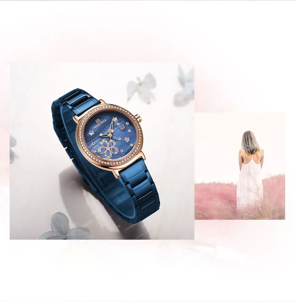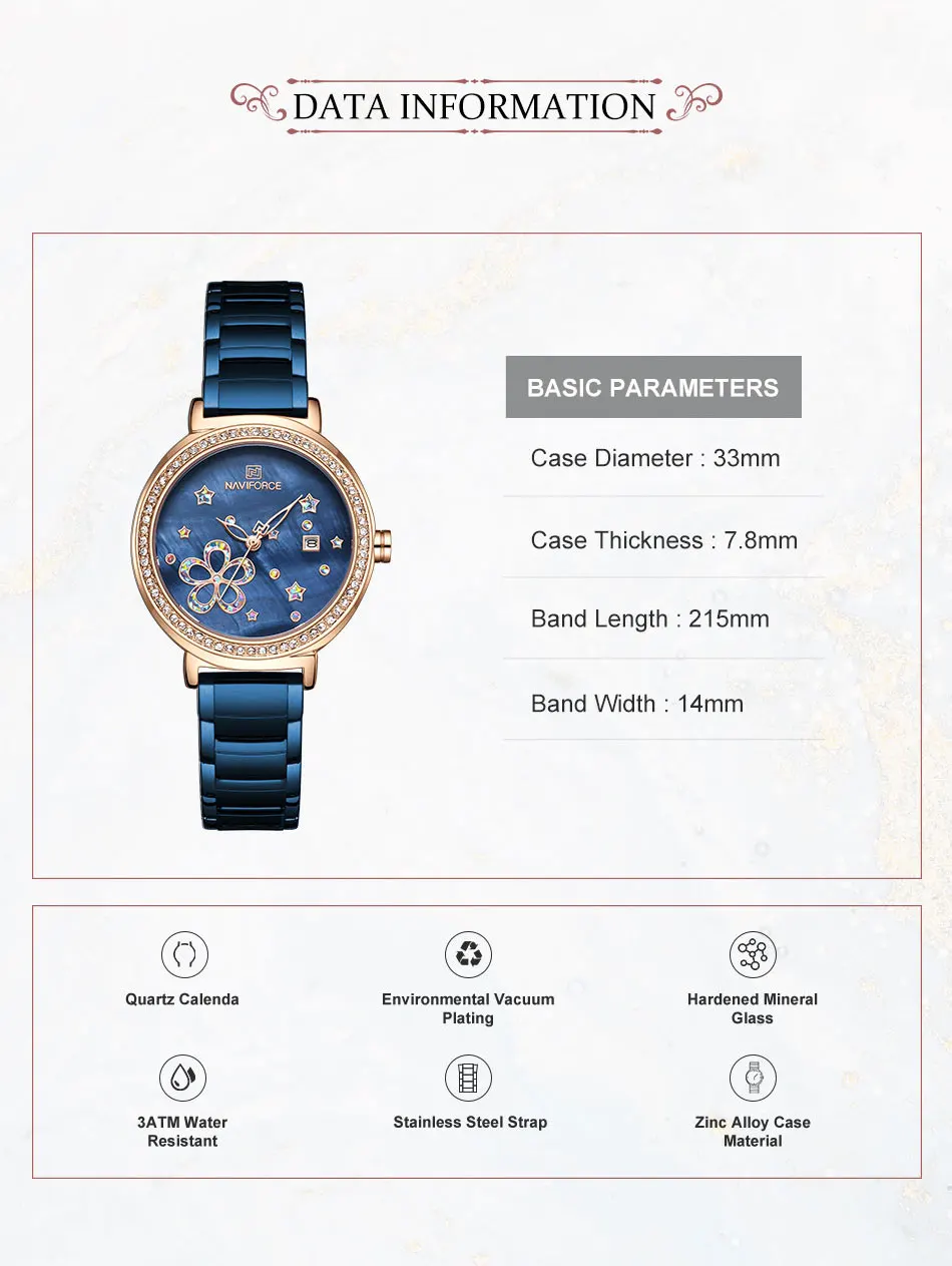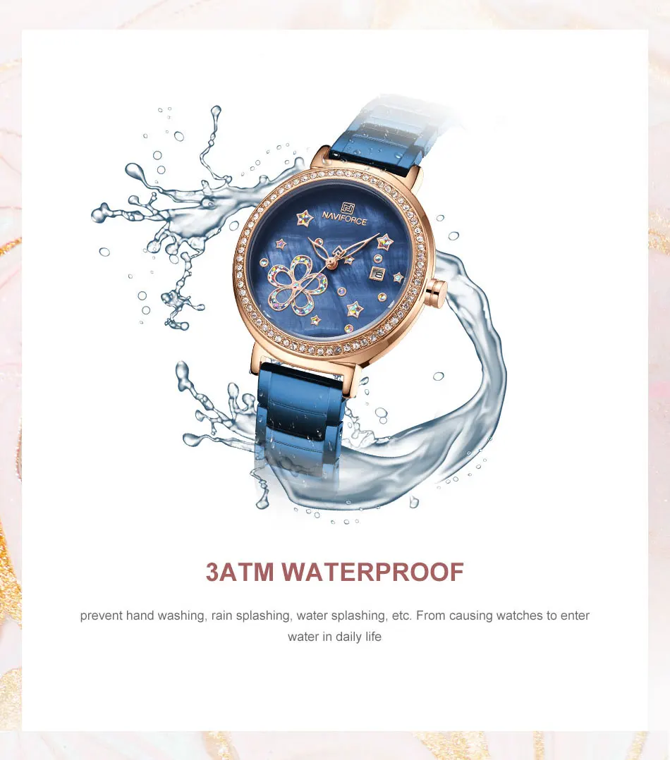 Женские роскошные часы NAVIFORCE Лидирующий бренд женские модные кварцевые часы женские водонепроницаемые наручные часы из нержавеющей стали Дата часы