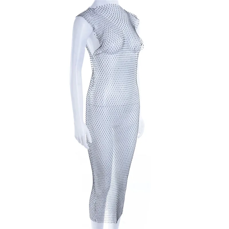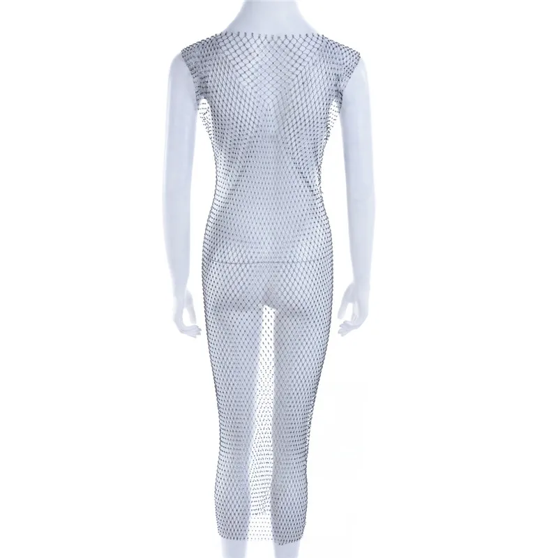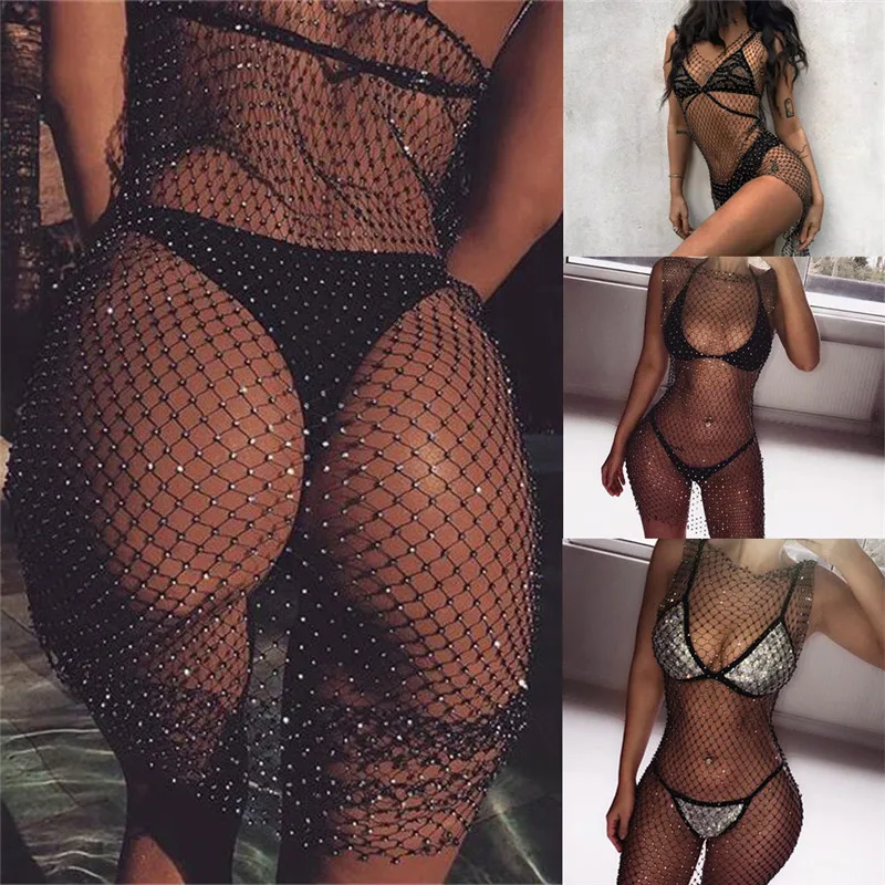 Женский купальник, накидка на бикини, кружевная, без рукавов, украшенная Стразы, блестящая сетка, женское сексуальное пляжное платье, выгодная покупка