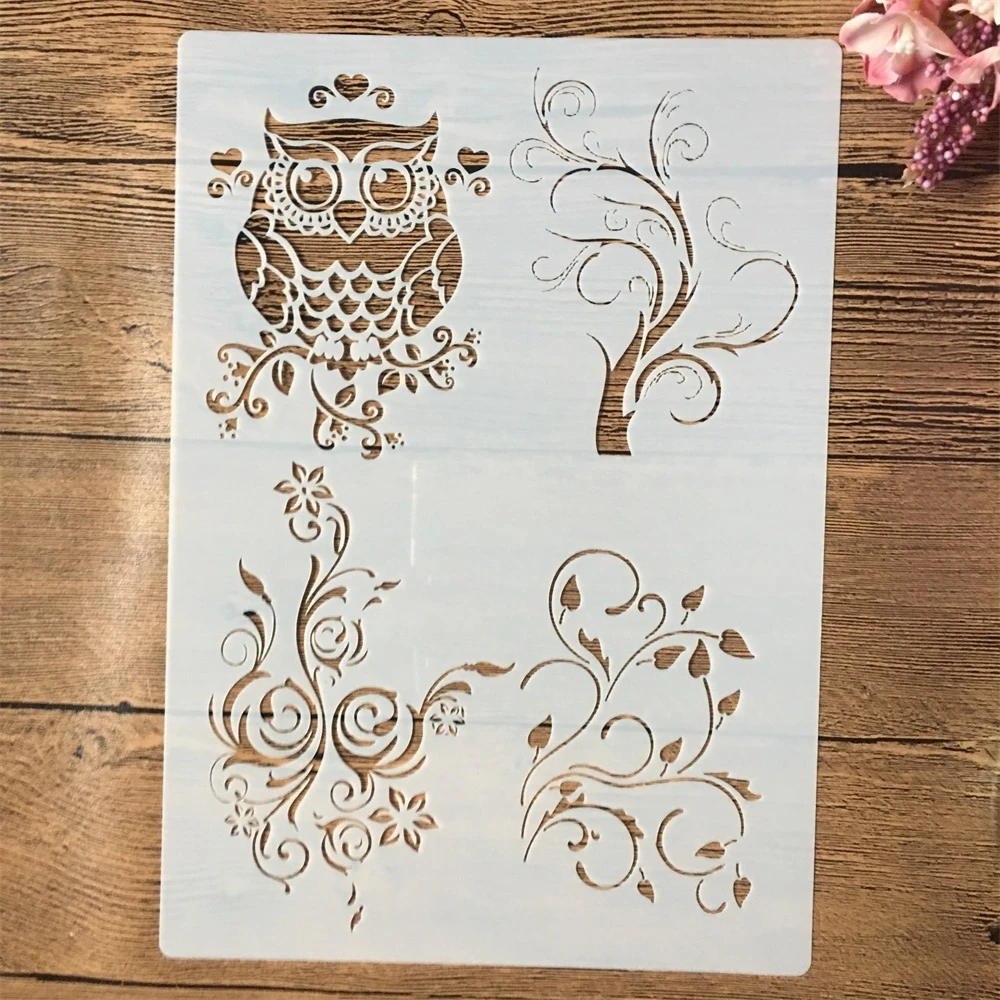 Трафареты A4 29 см в винтажном стиле с рисунком совы, дерева, травы, для творчества, слоев, настенная живопись, строительный шаблон
