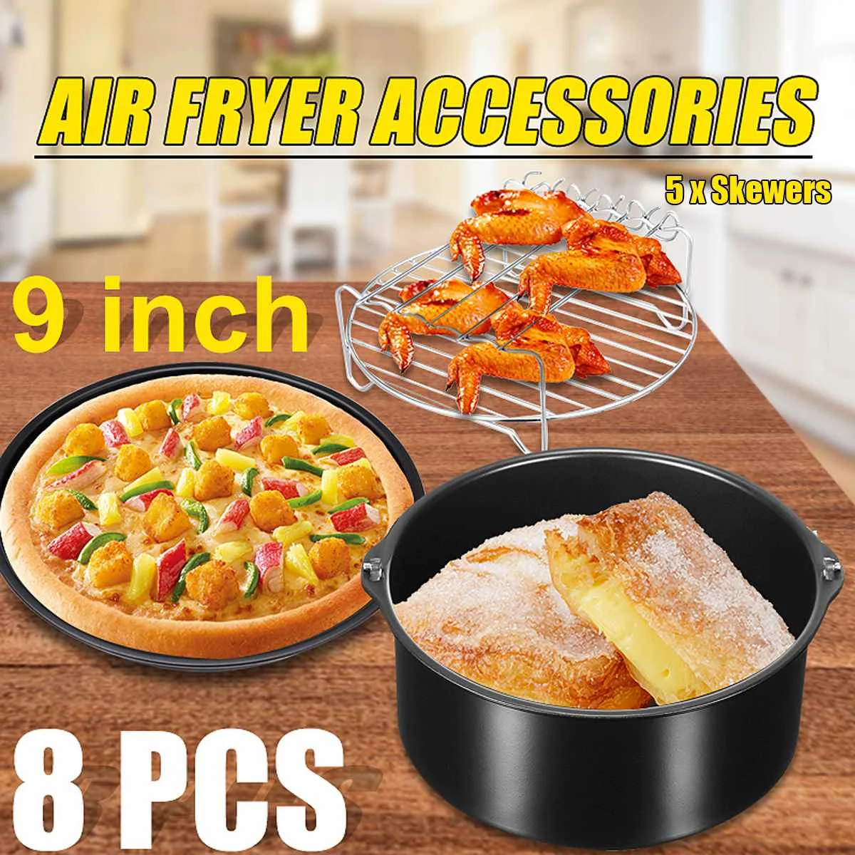 8 шт., аксессуары для фритюрницы, 9 дюймов, подходит для фритюрницы 5,2-кг, корзина для выпечки, тарелка для пиццы, гриль, горшок, кухонный инструмент для готовки Вечерние