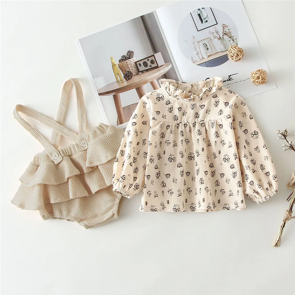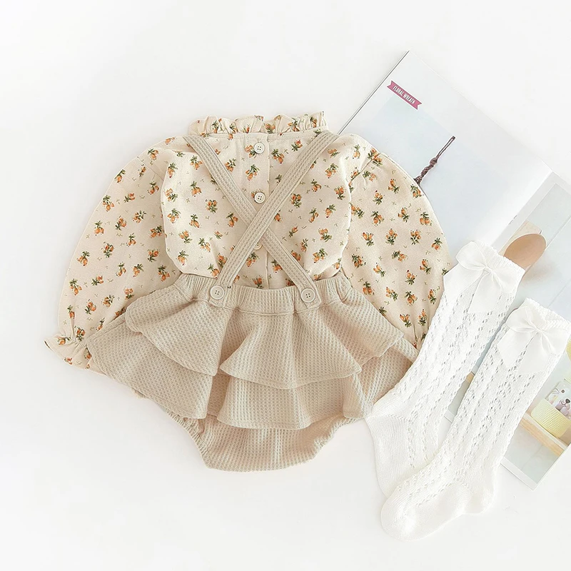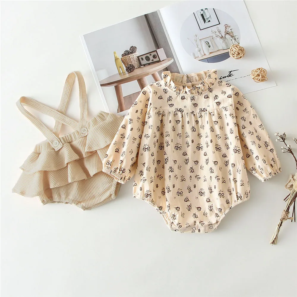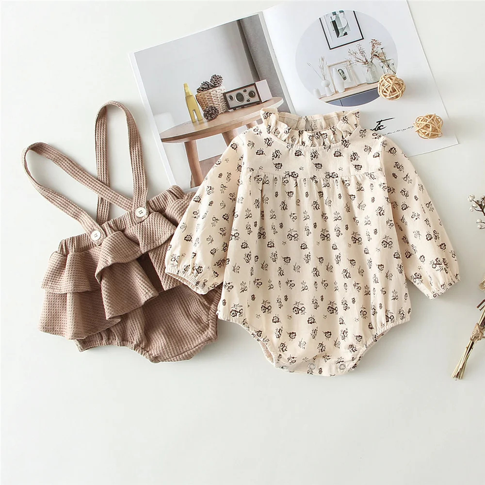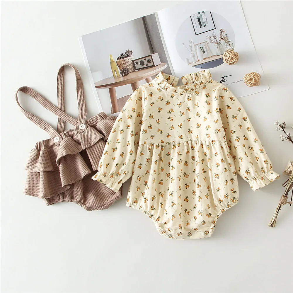 Комбинезон для девочек, хлопковый, с цветочным принтом, 2 шт.