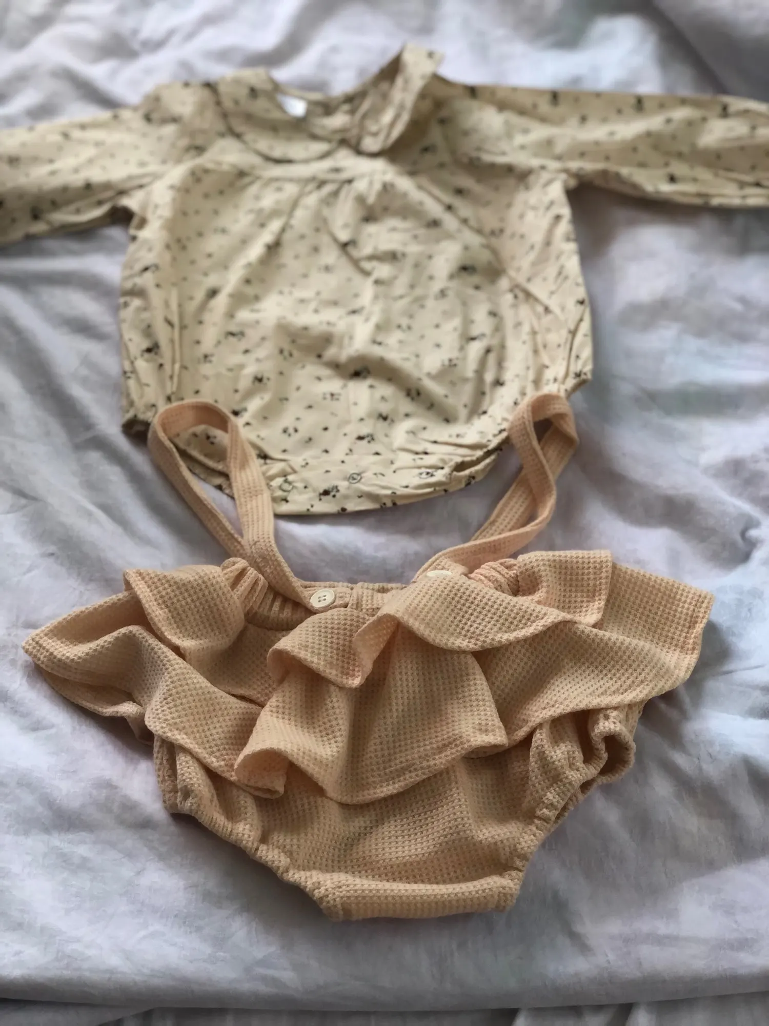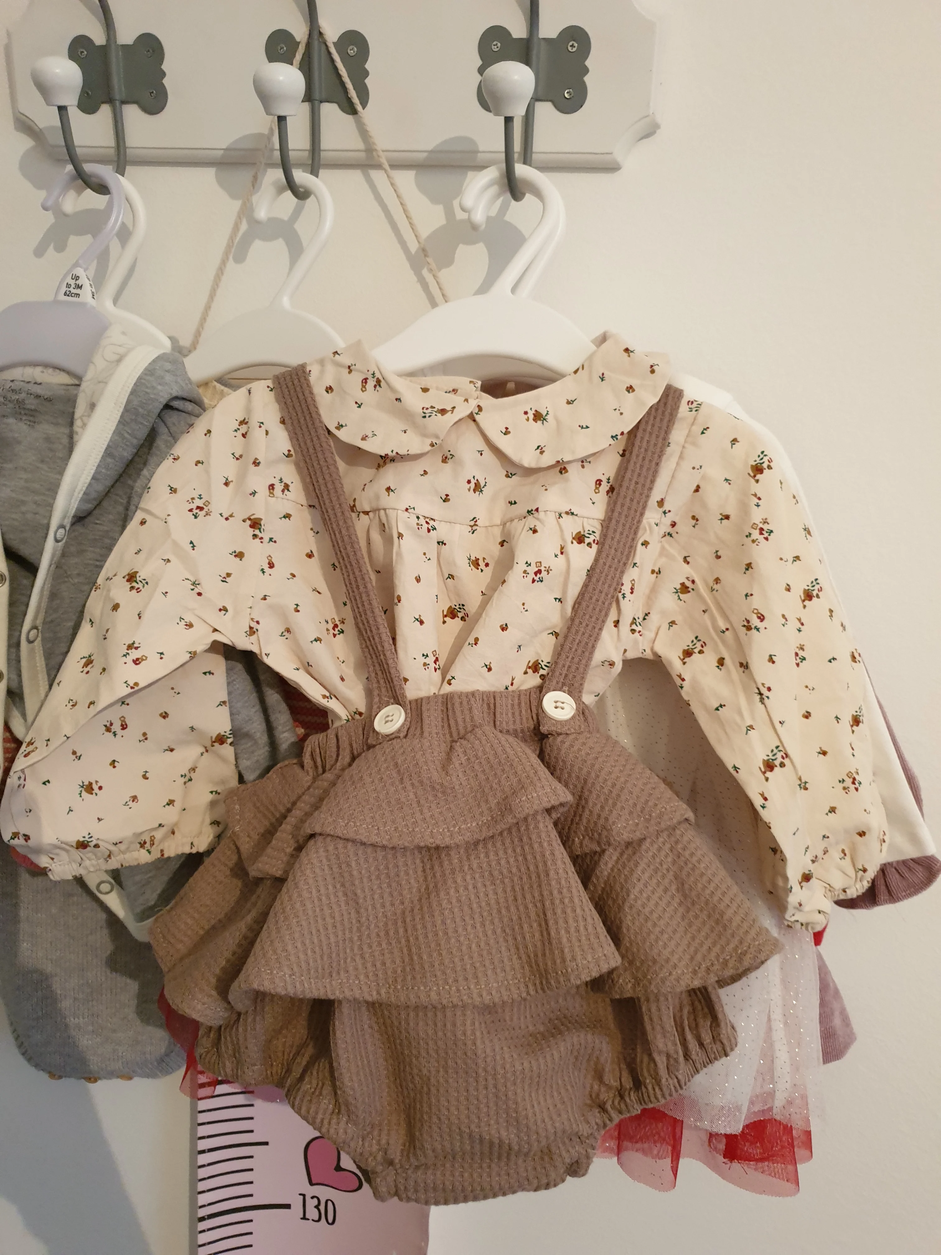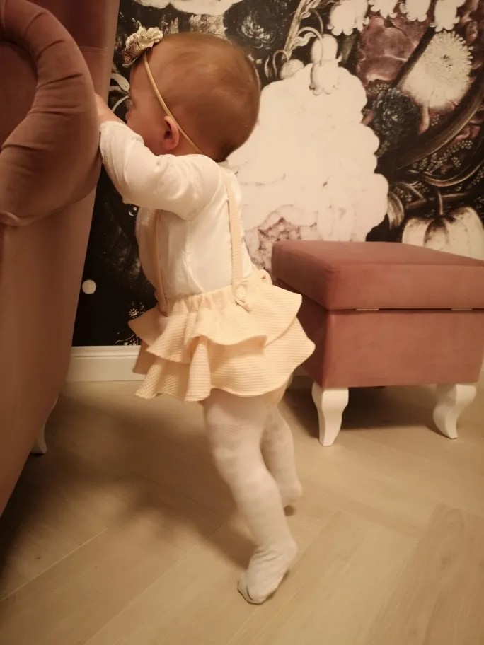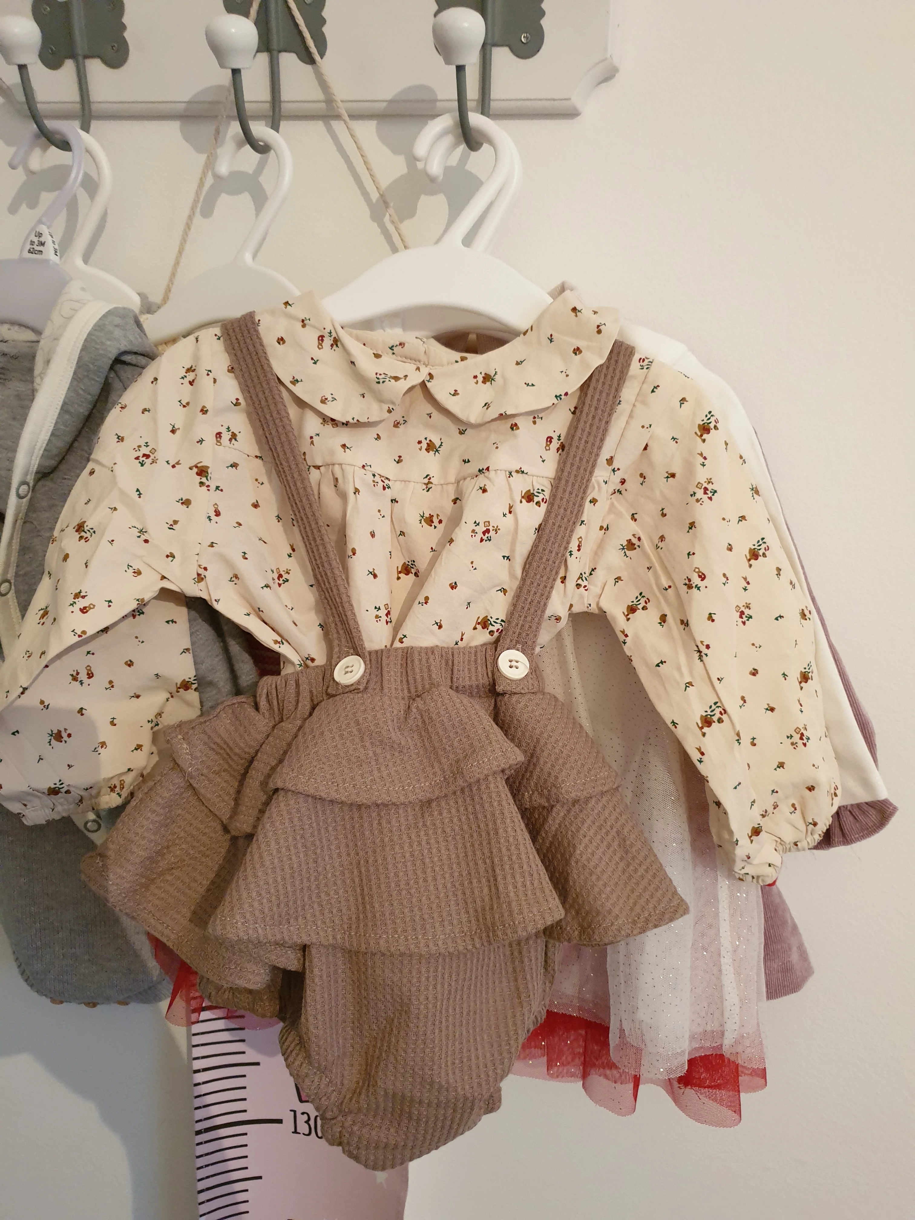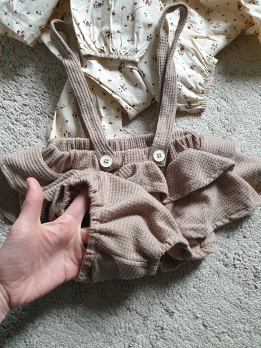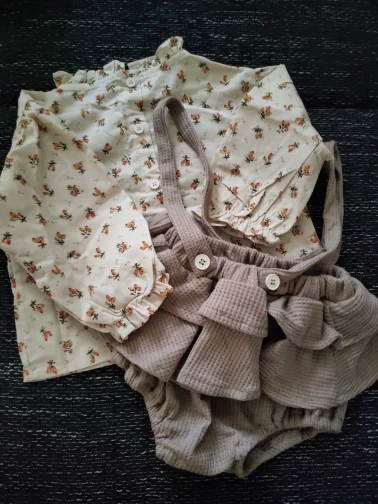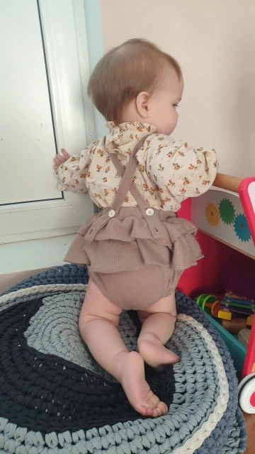 Красивый tuinbroekje! Хорошее качество и очень мило. Слишком плотная эластичная лента. Моя дочь 57 см и носит размер 60 (Размер 3 месяца). Очень эластичный