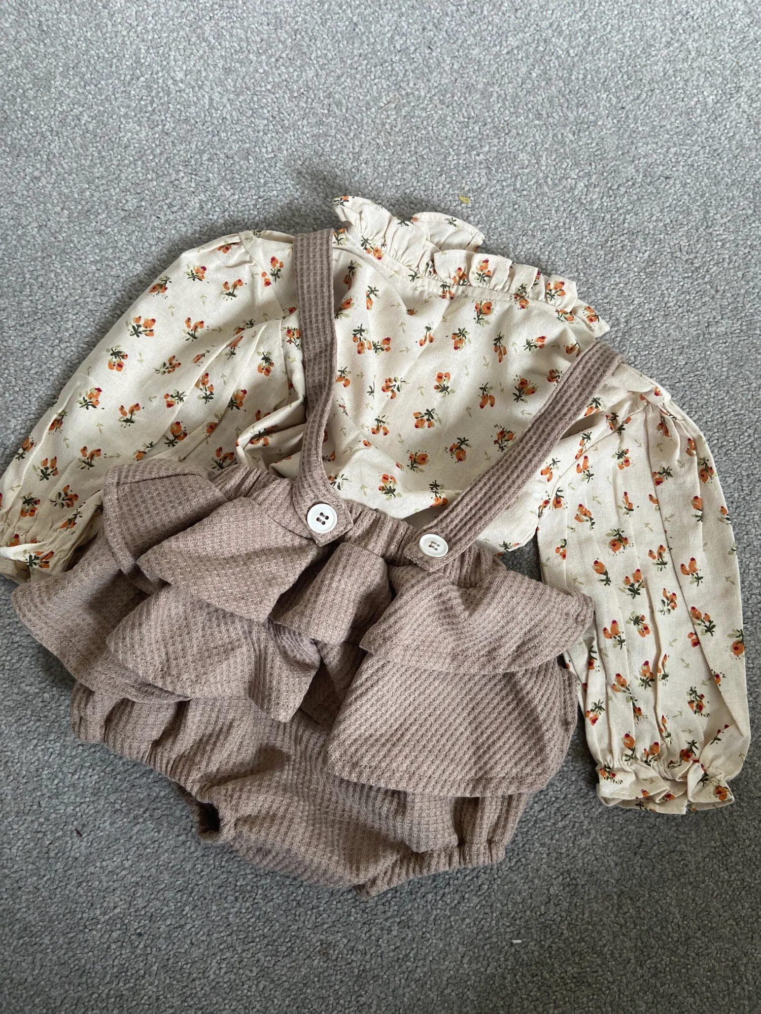 Отличное качество, смотрится на ребёнке просто великолепно , блузка из плотного хлопка, юбка из нежного трикотажа , цвета изумительные точно как на картинке! Размер соответсвует российским /европейским стандартам. Лямки при желании можно сделать меньше - есть дополнительные петельки