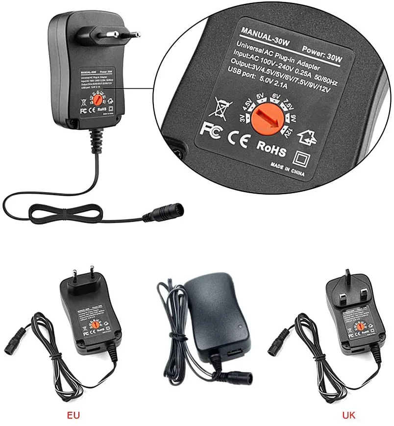 AC DC 3V 4,5 V 6V 7,5 V 9V 12V Питание Регулируемый трансформаторы ...