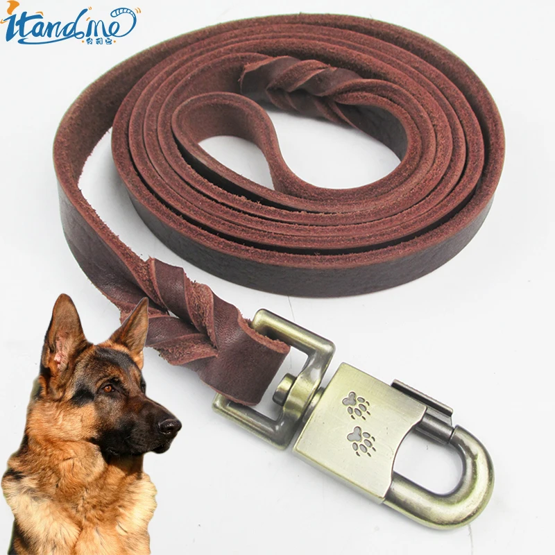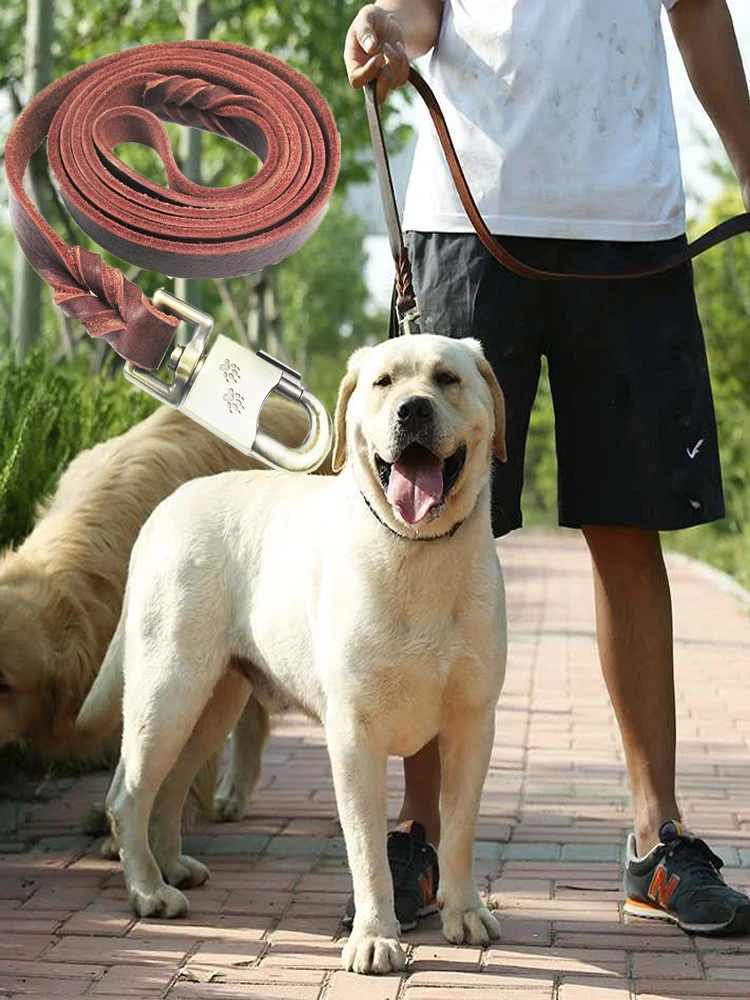 Поводок для крупной собаки из натуральной кожи, 185 см