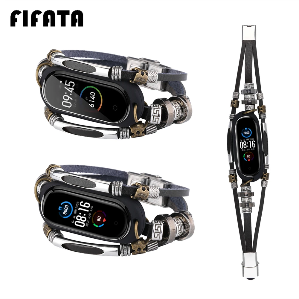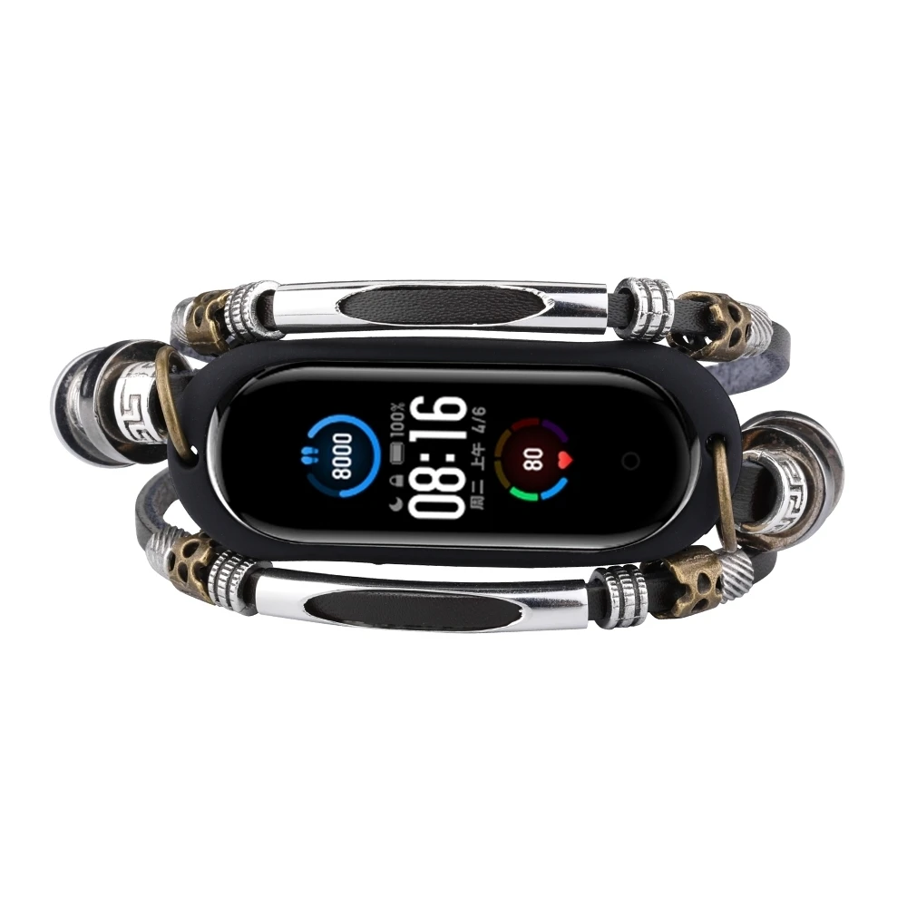 Ремешок металлический и кожаный для смарт-часов Xiaomi Mi Band 6 5 4 3
