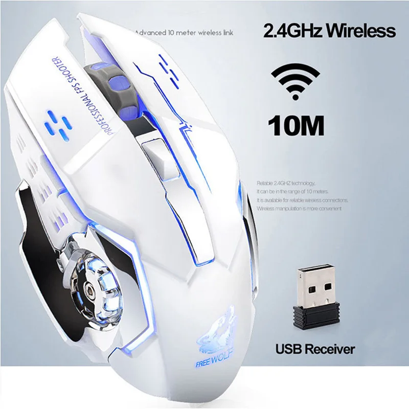 Беспроводная игровая мышь перезаряжаемая X8 тихий светодиодный USB оптическая эргономичная мышь игровая мышь для ноутбука/ПК