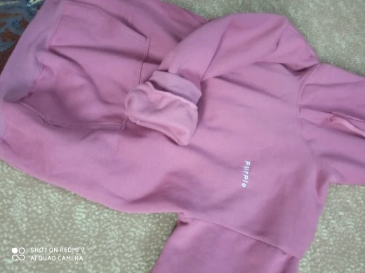 Хорошее качество ткани, очень тёплая толстовка, цвет как на картинке и с размером угадали