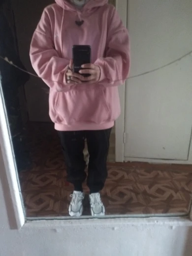 Толстовка в целом очень нравится. Теплая, надеваю ее на пары, когда холодно. Если хотите оверсайз как у меня на фото, то берите максимальный размер ( мой рост - 160 см). Единственный большой минус - шнурок плохого качества, на одной стороне уже есть затяжка, от этого его прячу. Можно носить аккуратно, и их не будет. Но это жизнь, и всегда аккуратной быть не получается
