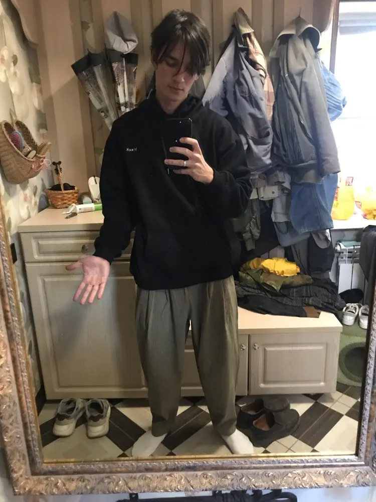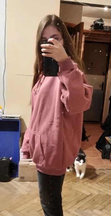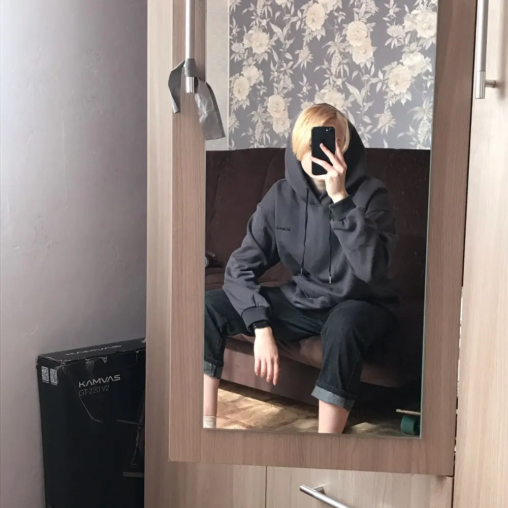 Главный плюс всего ассортимент в лэпстепе это - материал. Правда швея у них на 8/10 - где нитка может торчать, где шов не очень симпотичный. А второй жирный плюс за скорость доставки. 3 недели и ты уже красуешься перед зеркалом, кривляясь в своем новом образе, с улыбкой до ушей. С размером угадала: мой рост 168, заказала XL, села идеально (не слишком большая, как оверсайз, не слишком маленькая, как толстовка). Единственное, что Black на серой кофте написано - не состыковка, но довольствоваться ноской не помешало.