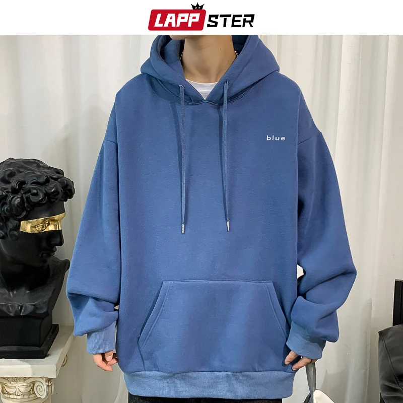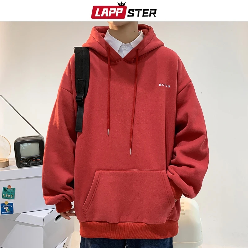 Мужская толстовка с капюшоном LAPPSTER, с вышивкой Sprint, 2021, корейский стиль, Харадзюку, 7 цветов, Черная Толстовка большого размера