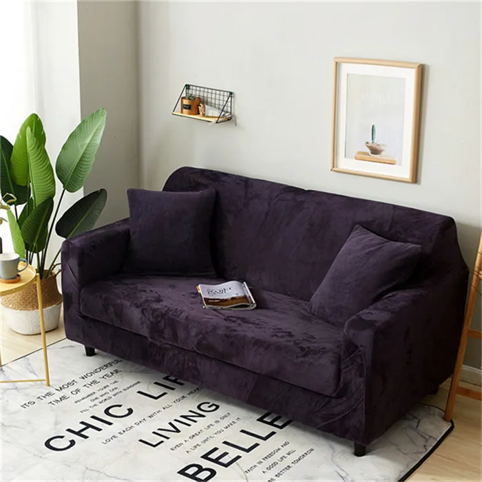 Плюшевый утолщенный эластичный чехол для дивана, однотонный Универсальный секционный чехол для дивана на 1234 места, эластичный чехол для дивана в гостиной