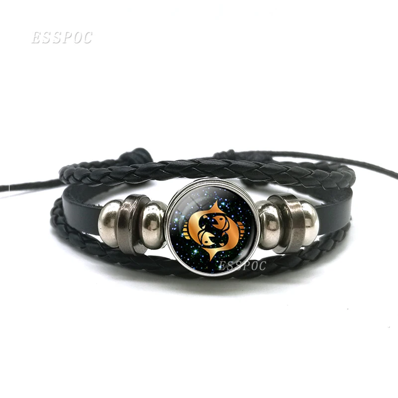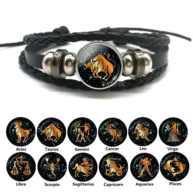 Кожаный браслет для мужчин и женщин, 12 знаков зодиака, дева, весы,...