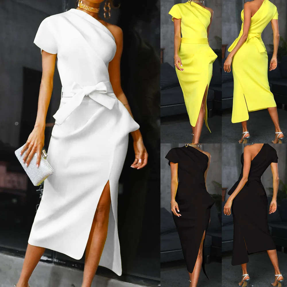 Элегантное черное платье для матери невесты длиной до колена, прямое вечернее женское платье с разрезом по бокам YSAN663