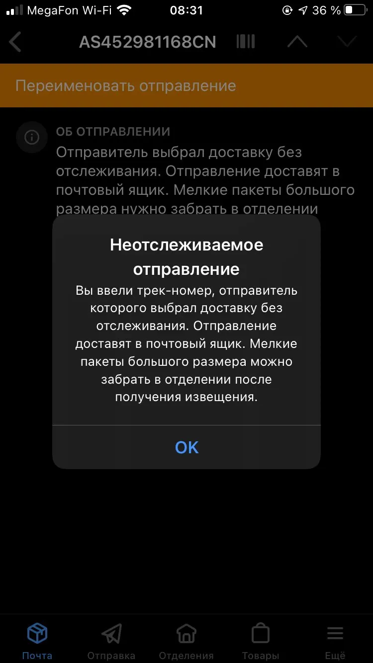 Посылка так и не пришла. Открыла спор. Продавец написал, что якобы телефон не корректный указан, хотя по моим данным в профиле всегда посылки приходили (считаю ошибку виной продавца). Посылка в России не отслеживается вообще (прикладываю фото). По трек номеру и специальной программе по отслеживанию посылок в Китае, что прислал продавец, посылка едет в Беларусью, что тоже очень очень странно. В общем одни косяки и потеря денег с этим заказом. Продавец только и кормит обещаниями. Обидно...( деньги в итоге не вернули, и посылки нет. Очень разочарована в этом заказе.