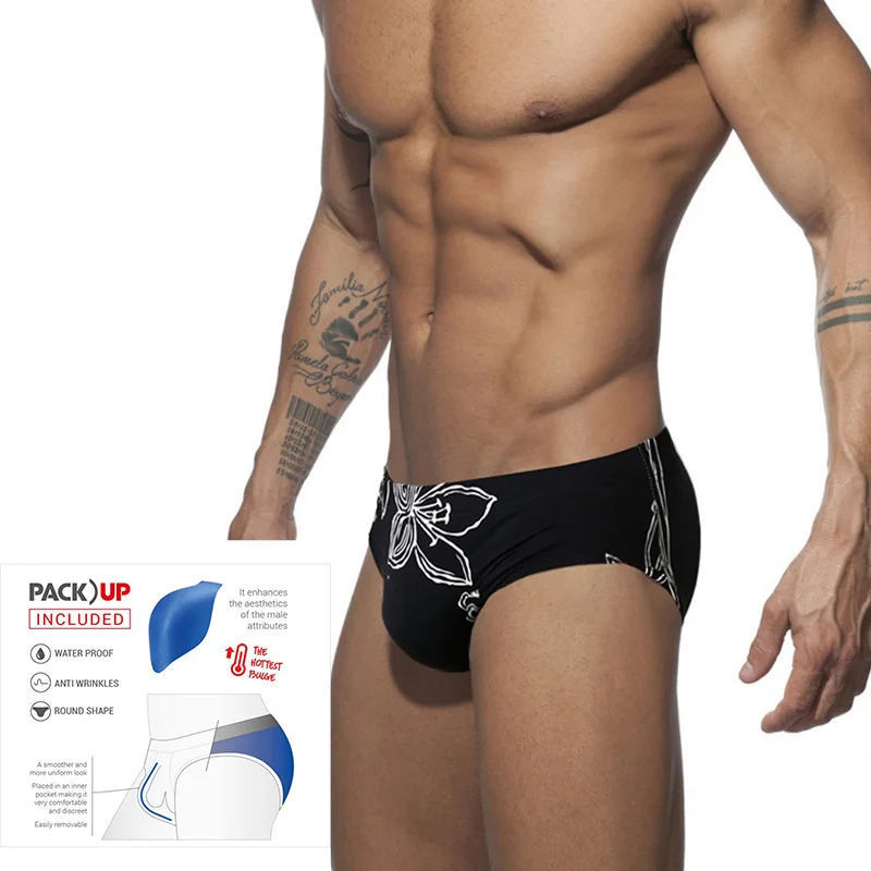 Мужские купальные шорты с принтомМодный мужской купальник с пуш-апБыстросохнущие мужские плавкиПляжная одежда для купания с низкой талией
