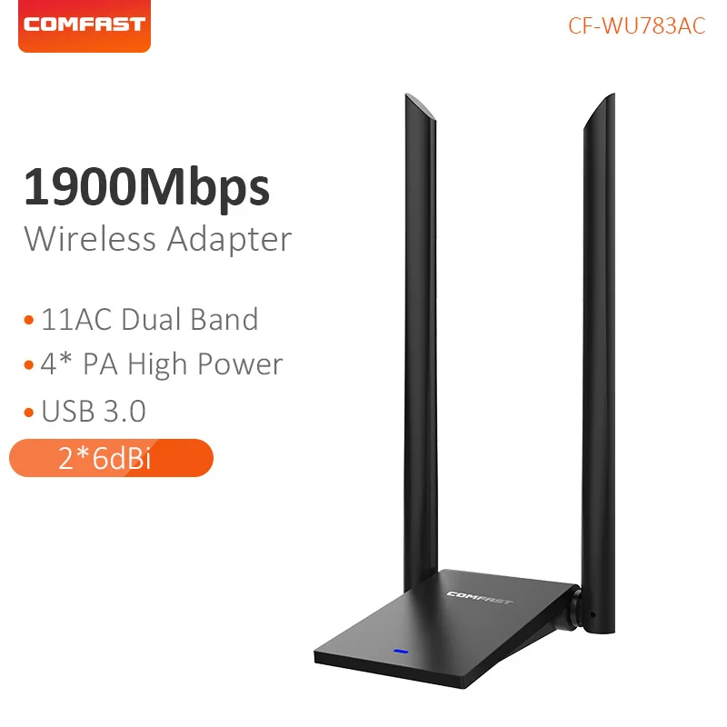 COMFAST 1900 Мбит/с двойная антенна сетевая карта двухдиапазонный 2,4 & 5,8G USB Wi-Fi адаптер беспроводной приемник 2 * 6dBi антенны CF-WU783AC