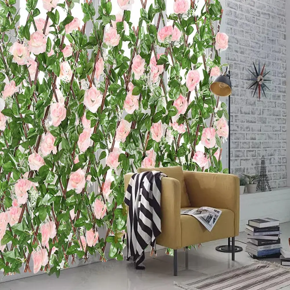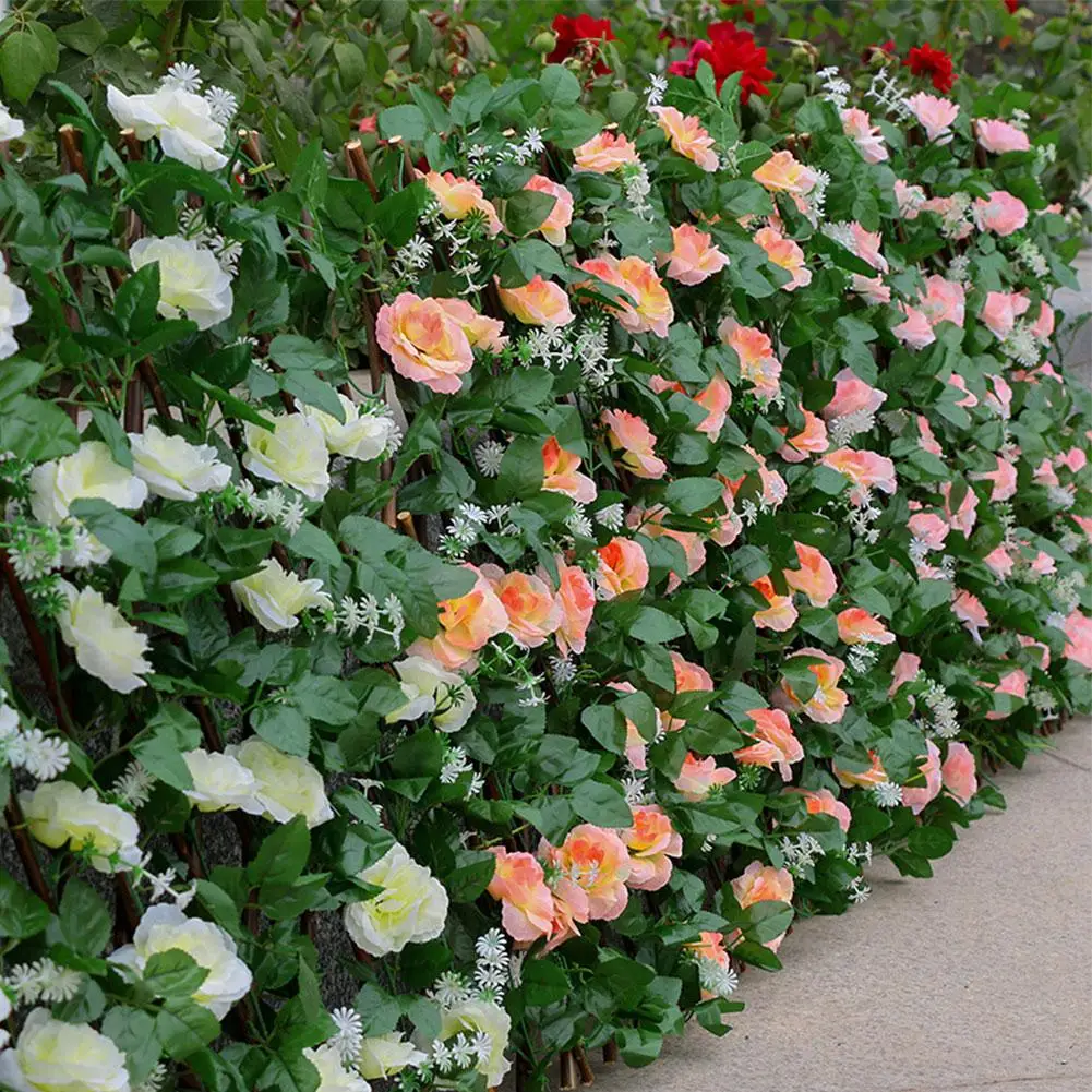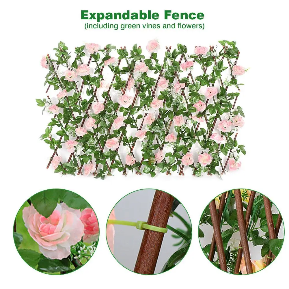 1. Высококачественный материал: забор изготовлен из ивового дерева, а искусственный зеленый лист лозы и цветы на