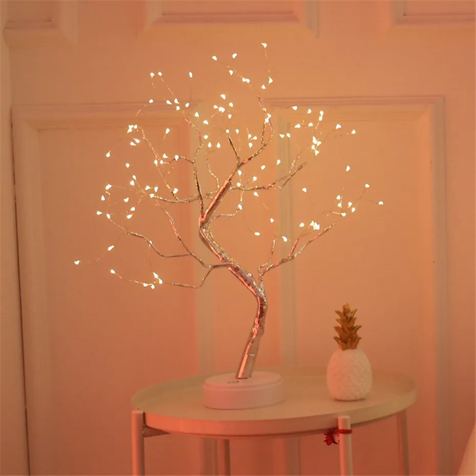108 светодиодов USB 3D настольная лампа медная проволока огненная елка жемчужный ночной Светильник для детей Крытый свадебный бар Рождественский Декор Сказочный светильник