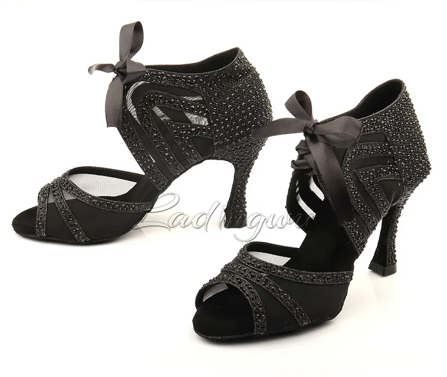 Женские туфли для латиноамериканских танцев, черные, стразы