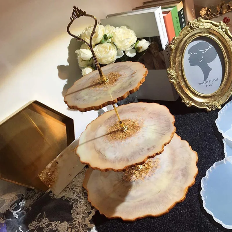 Новинка, 3 слоя, подносы для фруктов блюд, силиконовая форма для литья из смолы, подставка для торта, агат, украшение «сделай сам» SCI88