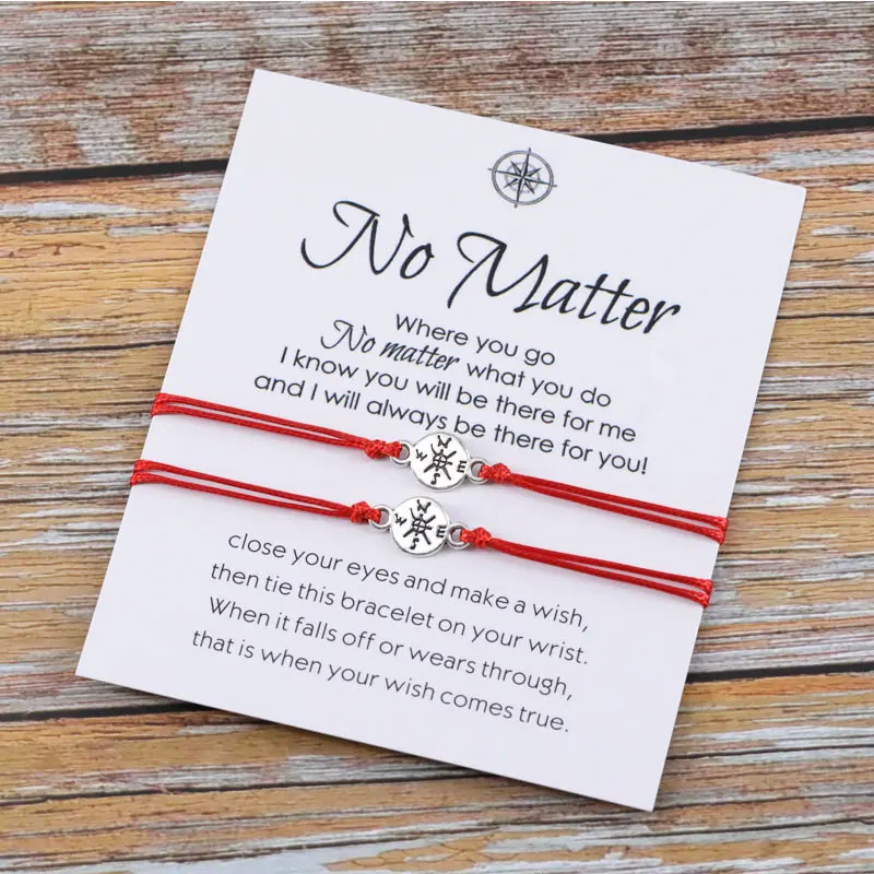 2 шт.компл. независимо от того, где браслет Лучший Друг подвеска компас отношения на большие расстояния браслет для пары для него