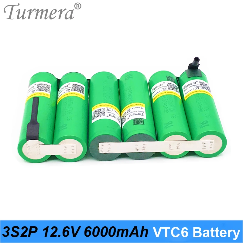 Литий-ионный аккумулятор Turmera 10,8 В 12,6 в 3S2P 6000 мА ч 18650 в tc6 3000 мА ч 30 А, аккумулятор с пайкой для шуруповерта