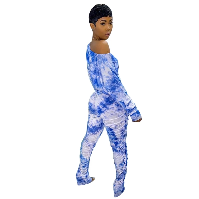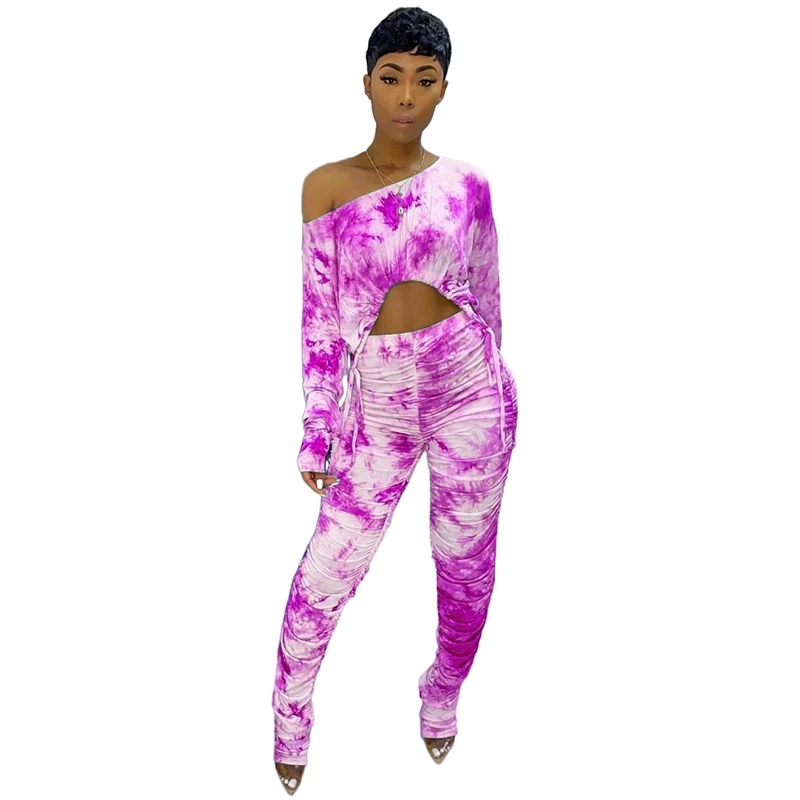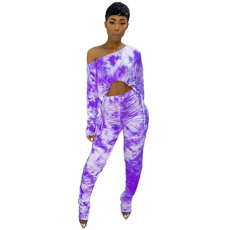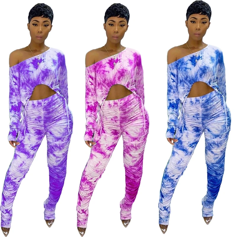 Вареный из двух частей Одежда для женщин; Комплект из 2 предметов с длинным рукавом укороченный топ и уложены, комплект со штанами, костюм, оптовая продажа, одежда для женщин комплект ювелирных изделий