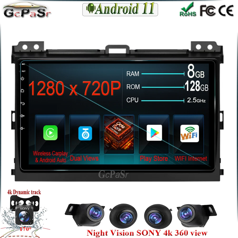 Android 11 для Toyota Land Cruiser Prado 120 2004-2009, автомобильное радио, мультимедийное Авторадио, видеоплеер для Carplay, GPS-навигация BT