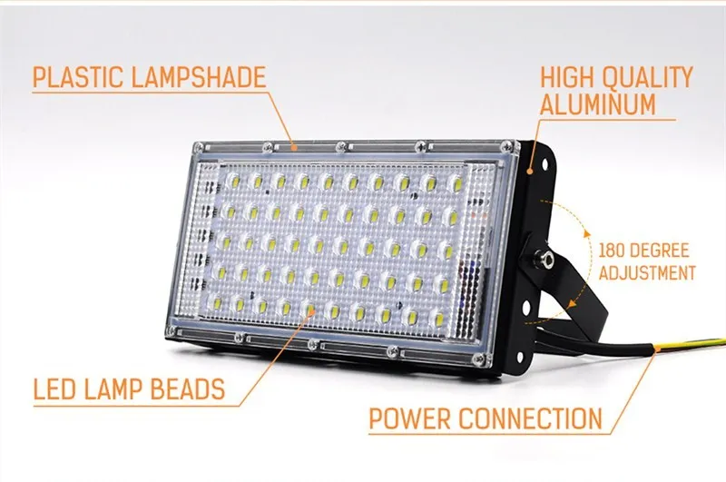 Факты: наш продукт изготовлен из высококачественных чипов. Высококачественный абажур из АБС-пластика с твердым высоким коэффициентом пропускания. Наш Светодиодный прожектор эквивалентен галогенной лампе мощностью 300 Вт. Прожектор также экономит 80% вашей энергии по сравнению с традиционными галогенными лампами. Осветите свою атмосферу с помощью СВЕТОДИОДНЫЙ светодиодного прожектора!Современный дизайн: тонкий дизайн помогает увеличить контакт воздуха по всей площади. Он замедляет отведение тепла без развития каких-либо рисков безопасности. Светодиодный отражатель с подключением провода заземления и рабочим напряжением (AC 110V 220V AC 230V AC 240V ). Он также имеет угол луча 180 градусов. Он также имеет угол луча 180 градусов.Водонепроницаемость: наш продукт имеет класс водонепроницаемости Ip65. Идеально подходит для использования в помещении и на улице. (Мы рекомендуем Не погружать его в воду.)Гарантия качества: Наша продукция проходит сертификацию CE, мы предоставляем 24 месяца ограниченной гарантии на продукцию.