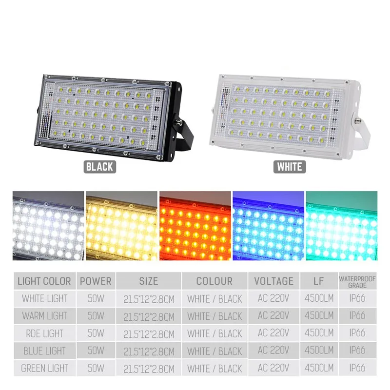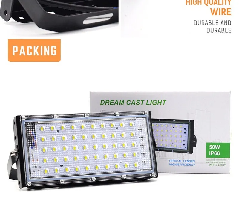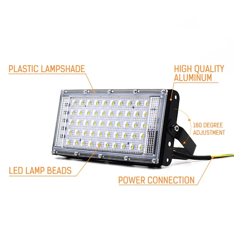 Уличный светодиодный прожектор, водонепроницаемый прожектор с отражателем IP65, 50 Вт, 110 В, 220 В, 240 В