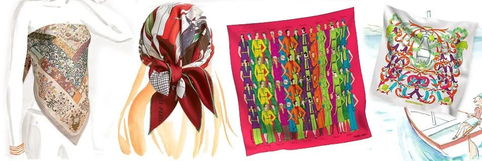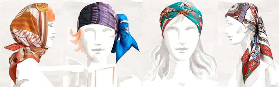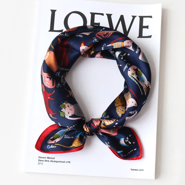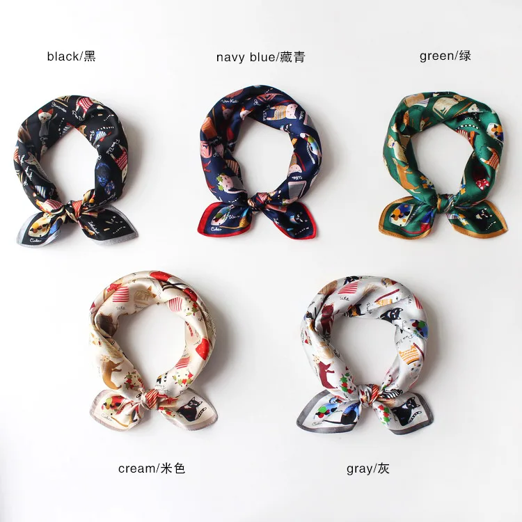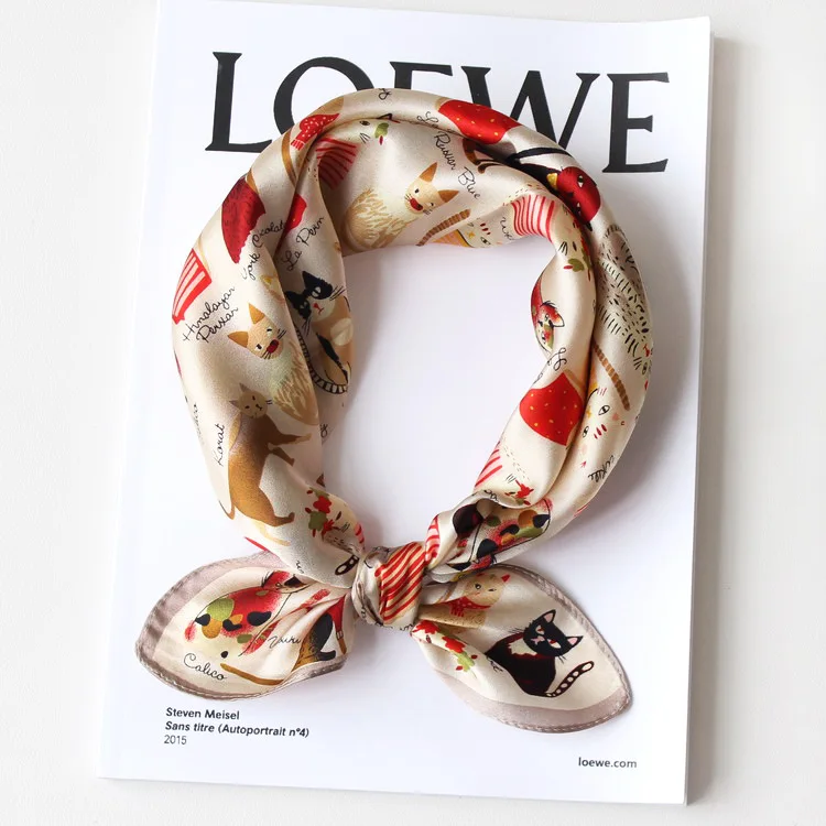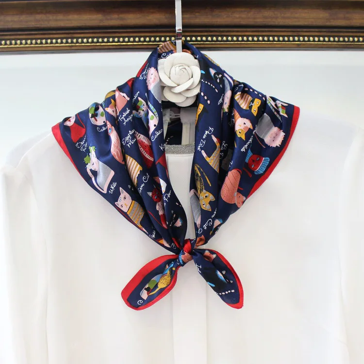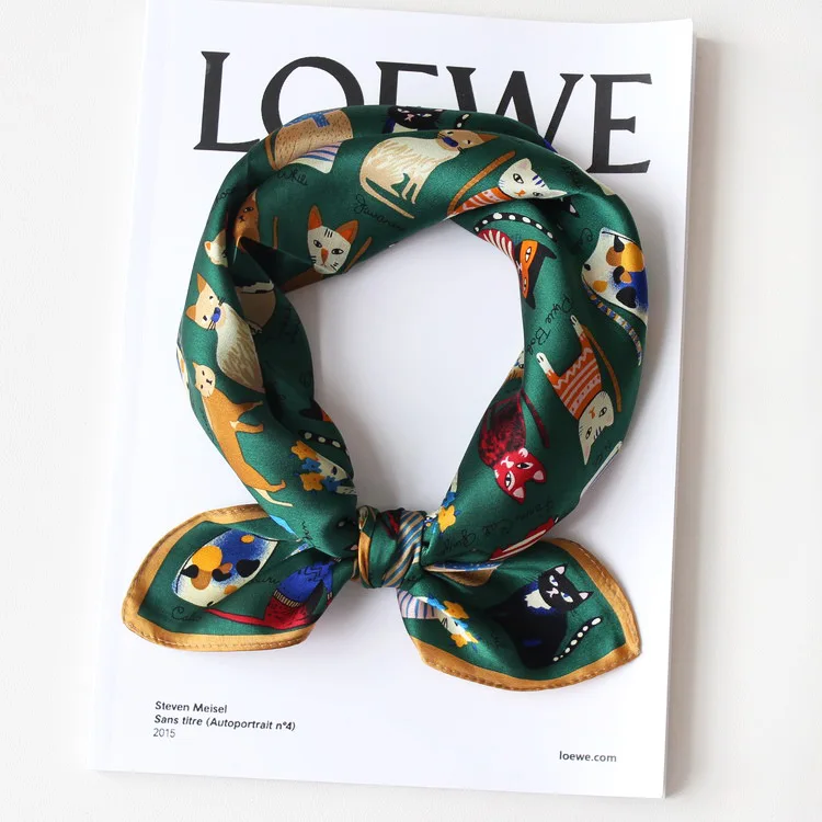 Шарф из натурального шелка с принтом мультяшного кота, 53 см