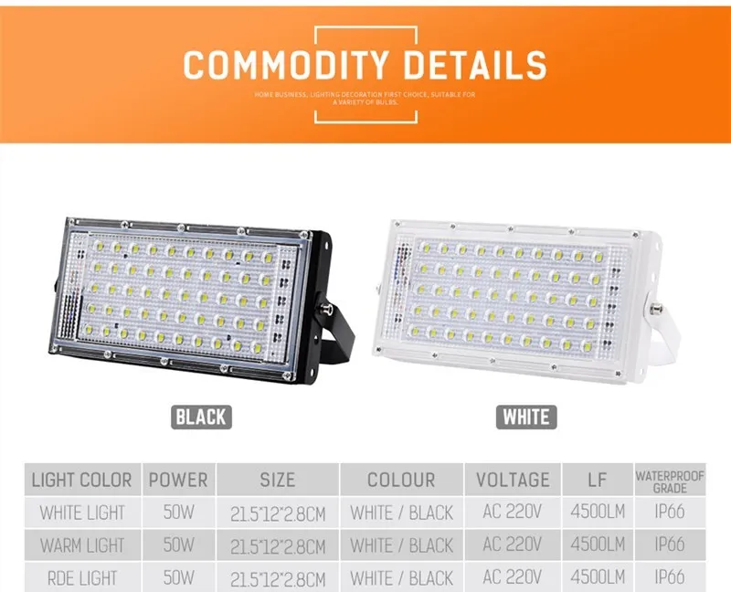 ① Факты: наш продукт изготовлен из высококачественных чипов. Высококачественный абажур из АБС-пластика с высоким коэффициентом пропускания. Наш светодиодный прожексветильник эквивалентен галогенной лампе 300 Вт. Прожектор также экономит 80% вашей энергии по сравнению с традиционными галогенными лампами. Осветите вашу атмосферу с помощью СВЕТОДИОДНЫЙ светодиодного прожектора!
