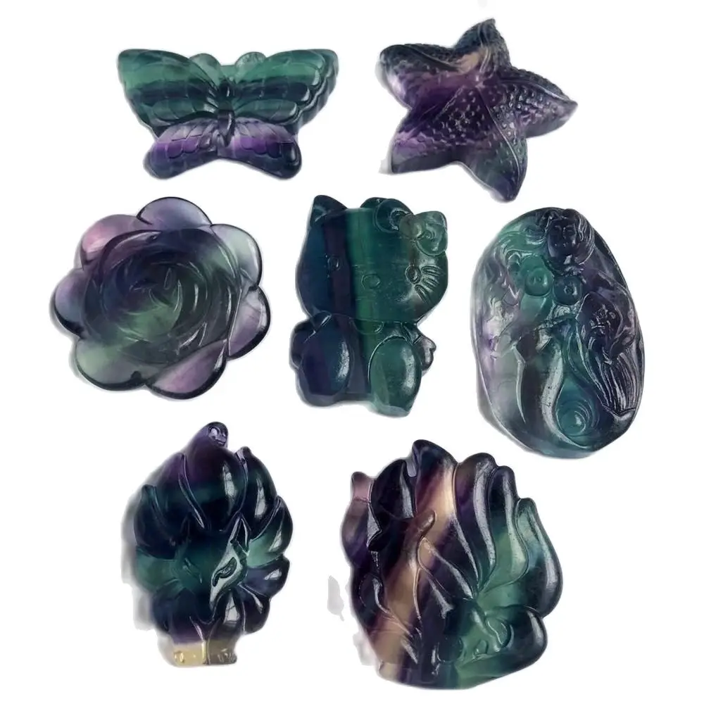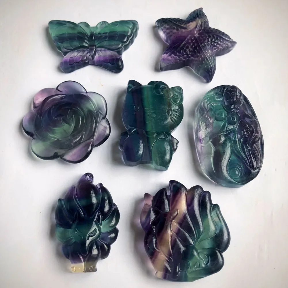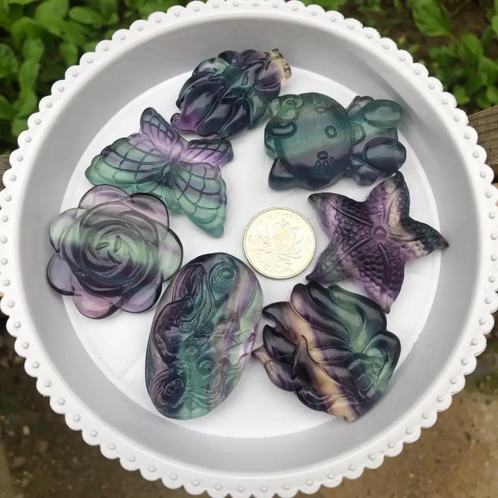Красивые натуральные красочные флюоритовая, Хрустальная резные животные Исцеляющие счастливый амулет животное подарок