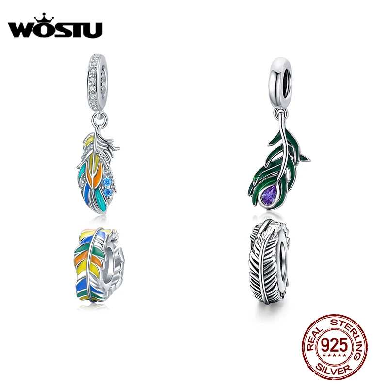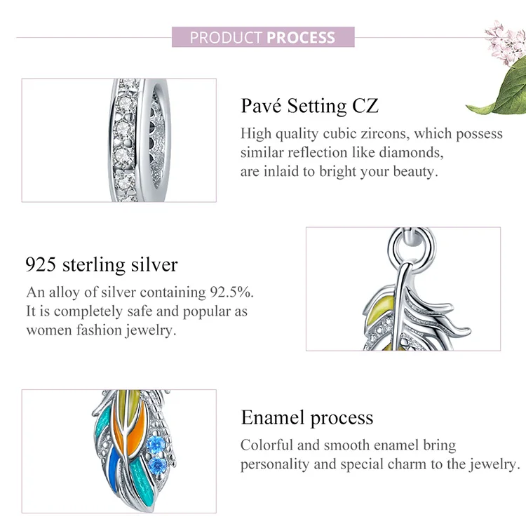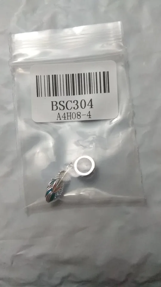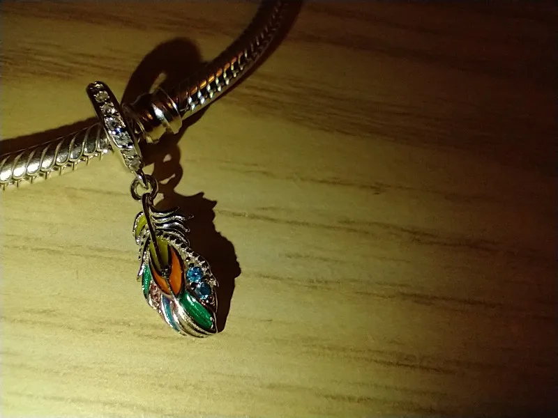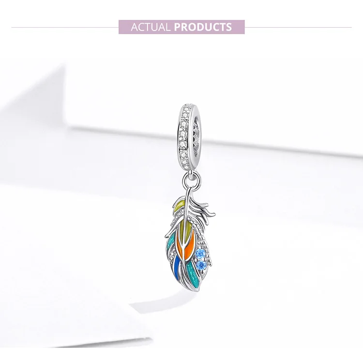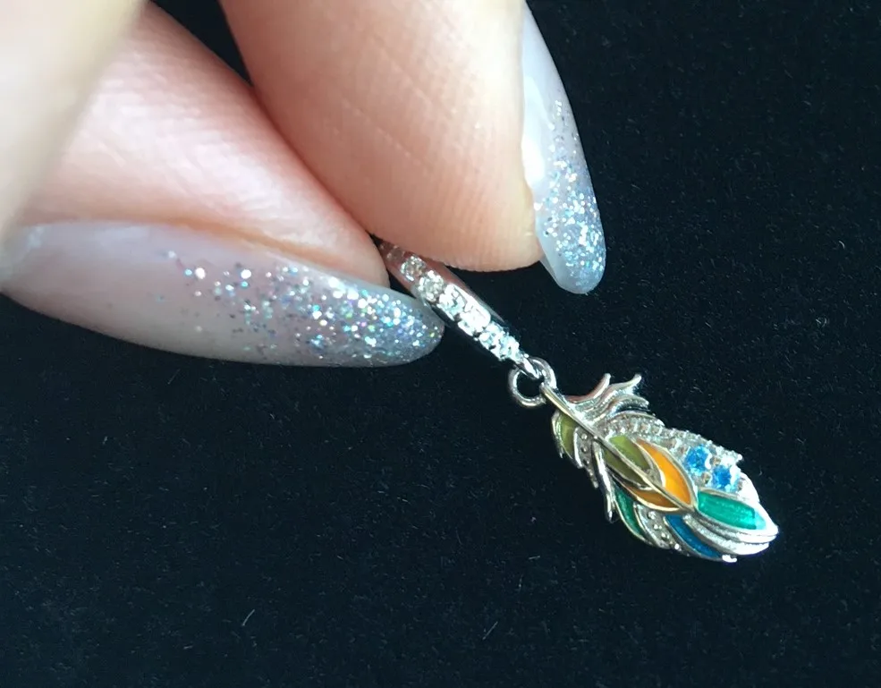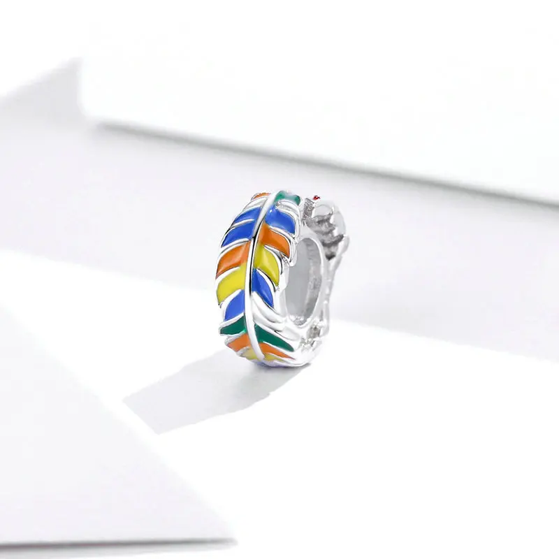 Бусина-Шарм из серебра 925 пробы, с эмалированным пером
