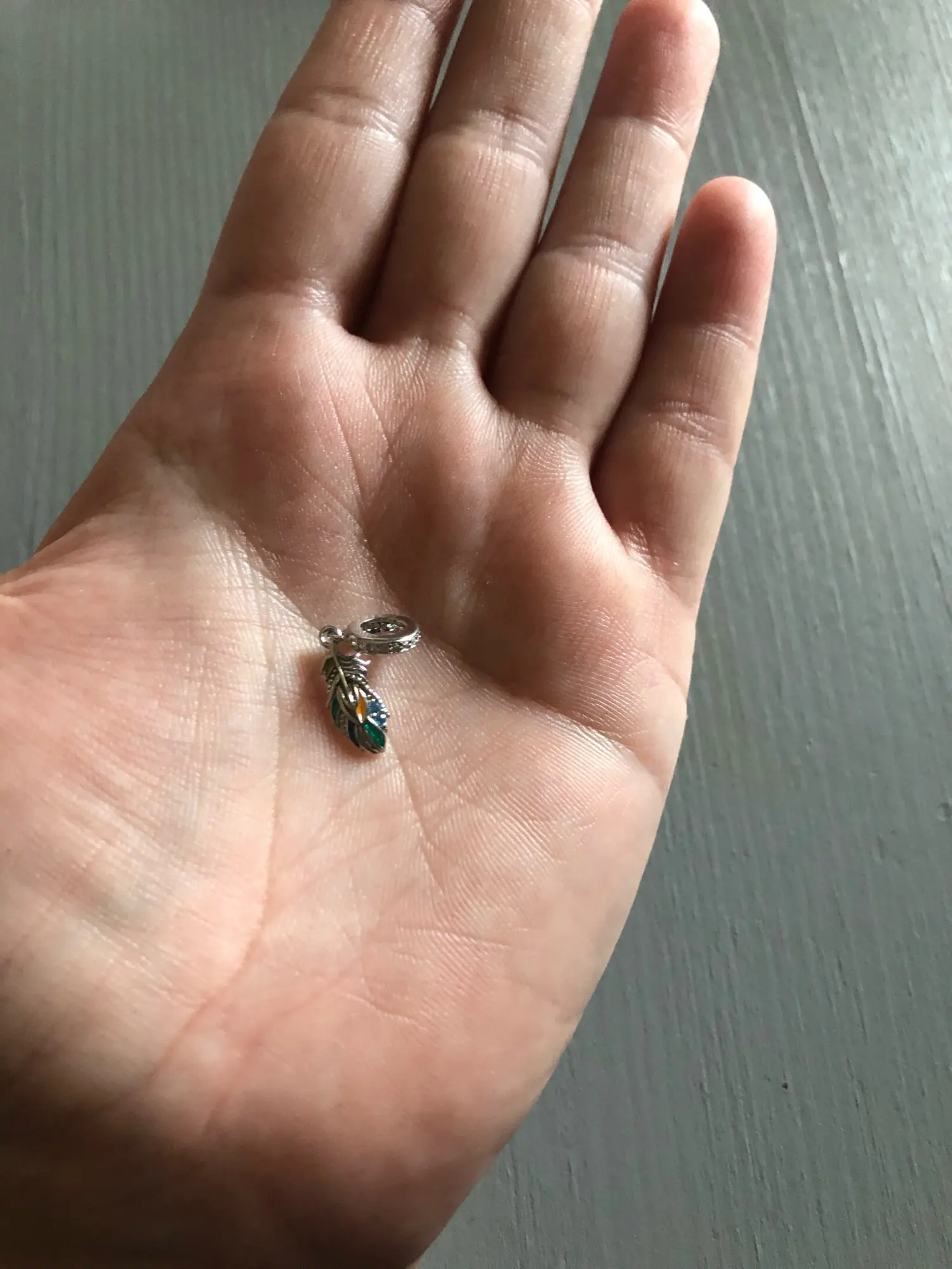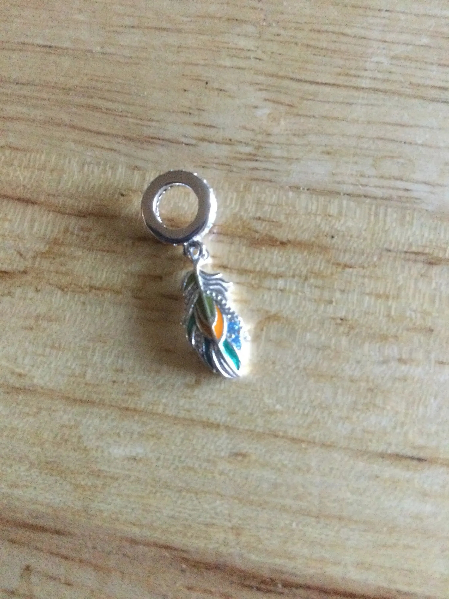 Перышко оказалось очень небольшим. Но при этом оно очень изящное, качественно выполнена покраска эмалью. Пришло за пару месяцев в Красноярский край в общей посылке с несколькими другими магазинами. Также продавец положил подарочек - металический шарм в виде сердечка. В общем, заказывала дочери, она довольна.