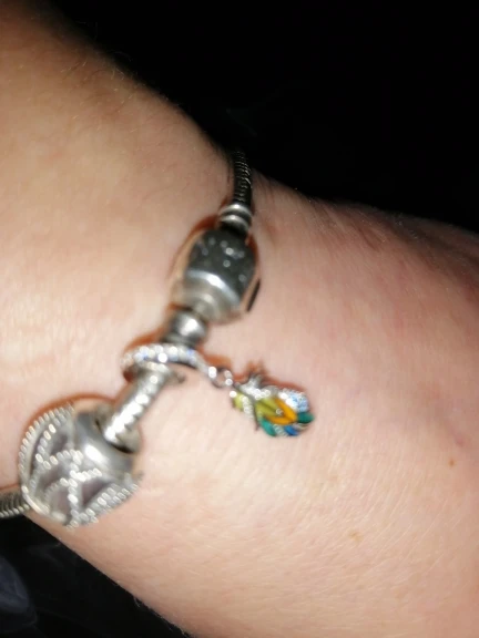 Шарм красивый, но на фото бирюзовый цвет, а в реальности темно-зеленый. На фото красивее. Все равно спасибо продавцу.