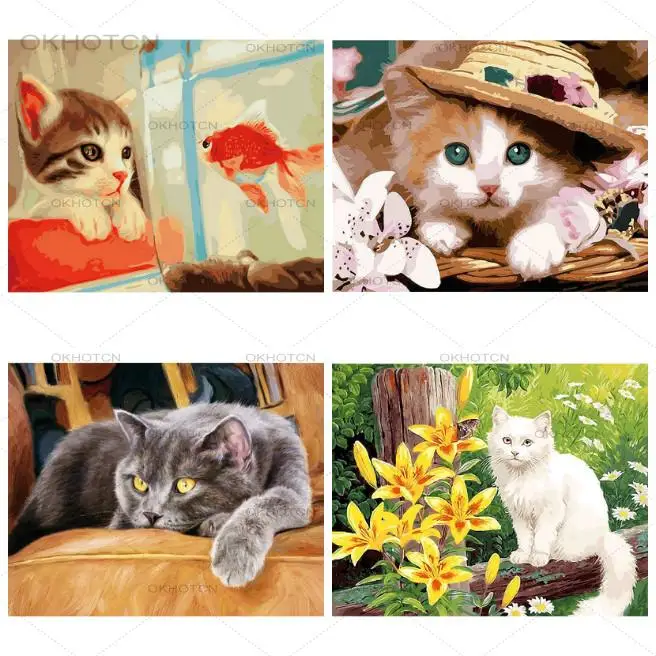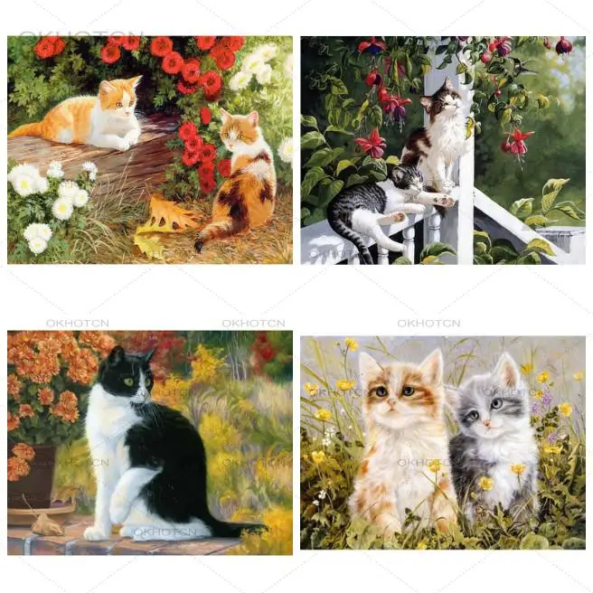 Животные Кошки Алмазная картина Скандинавское украшение для дома Алмазная вышивка Домашние животные цветы постеры алмазное Искусство Декор Рисунки для детской комнаты