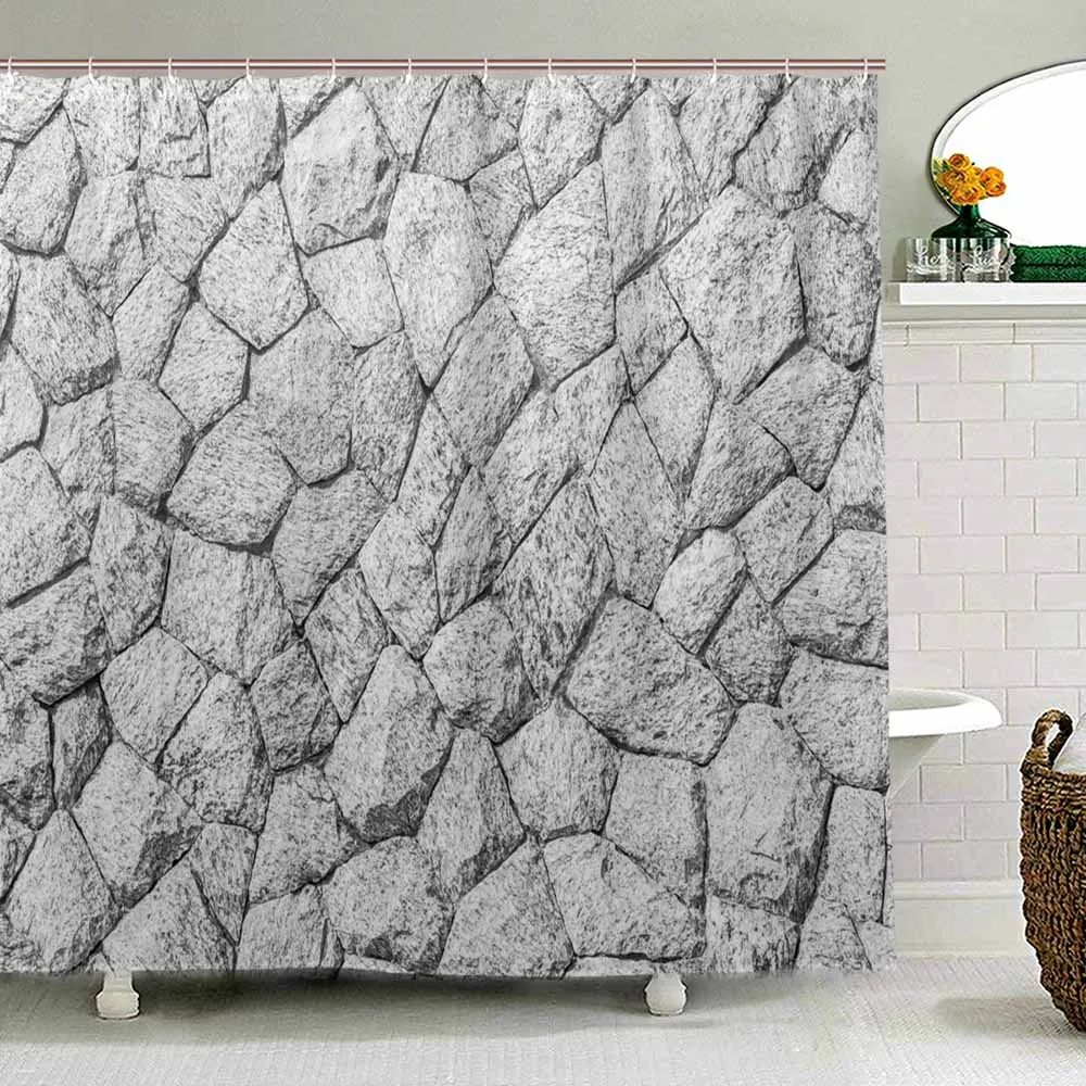 Серая занавеска для душа каменная стена текстура изображения грубые ржавые блоки устаревшая структура античный гранж выветривающаяся занавеска для ванной s