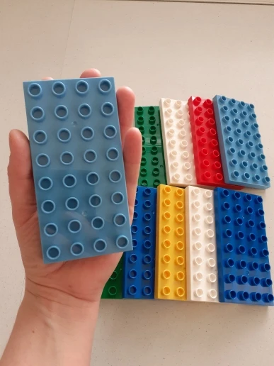 Более тонкий пластик, чем оригинал, но идеально совместим с duplo и hubelino.