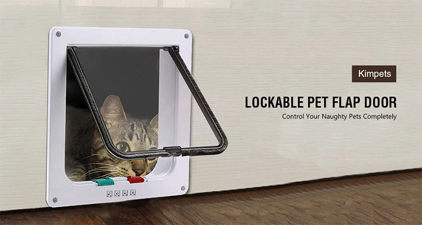 С рисунком собачки и котика клапаном двери с 4 способ запираемый Водонепроницаемый Экран окна для животных мелких животных кошки собаки анти-побег Безопасность зоотоваров ворот