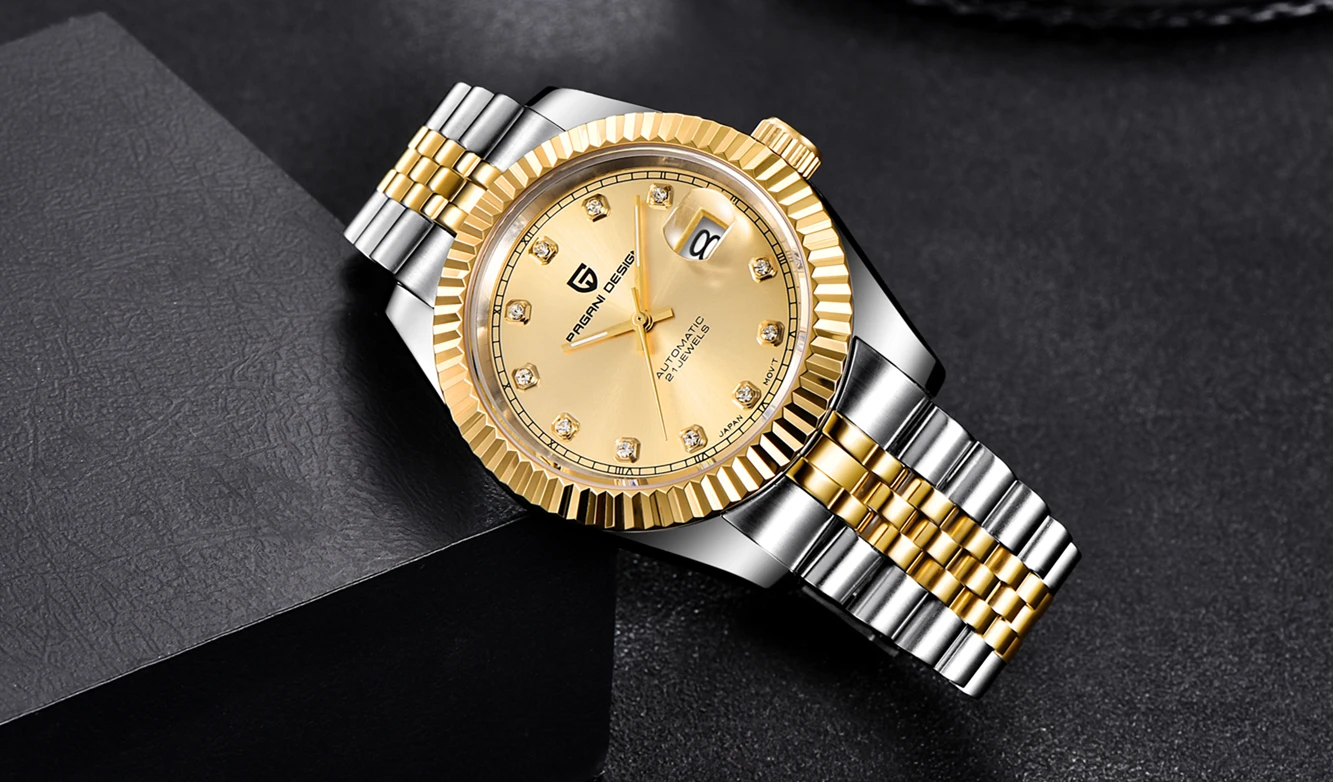 Часы наручные PAGANI мужские, дизайнерские двухцветные автоматические механические наручные, с браслетом из нержавеющей стали, с юбилейным браслетом