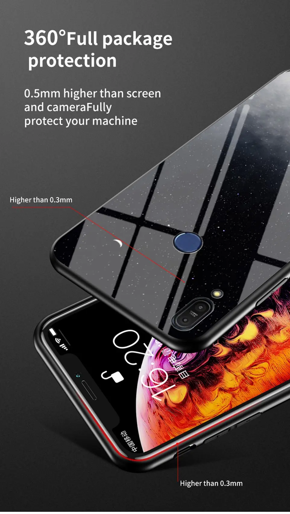 Особенности продукта: 1. Материал: Изготовлен из высококачественного закаленного стекла чехол + Мягкий силиконовый край 2. Характеристики: противоударное закаленное стекло с защитой от царапин, тонкий и легкий светильник 3. Функция: Отличная защита от грязи, царапин и повреждений 4. Небесно-звездный узор, выглядит стильно