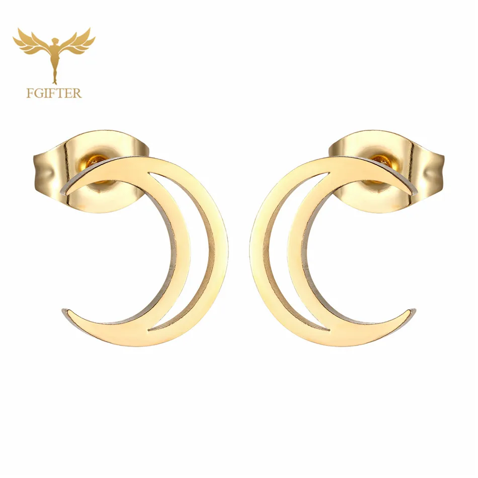 Лидер продаж, женские серьги-гвоздики, ювелирное изделие из золотистой нержавеющей стали, серьги-гвоздики в форме луны для женщин, женские аксессуары
