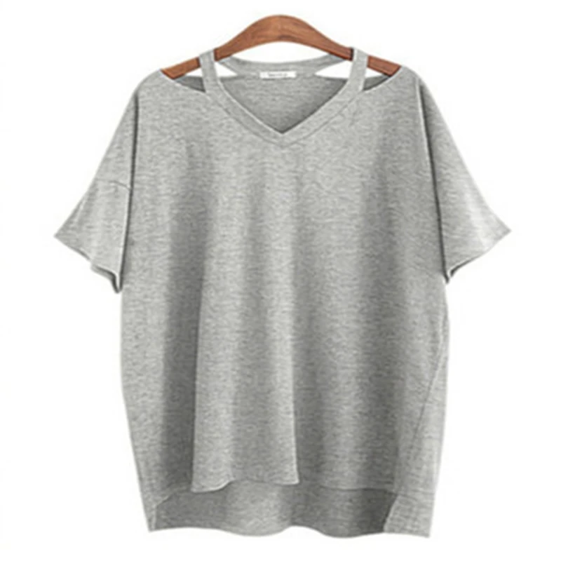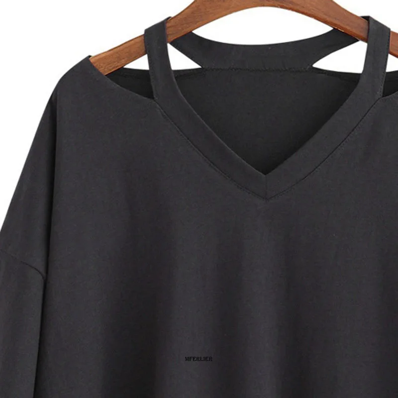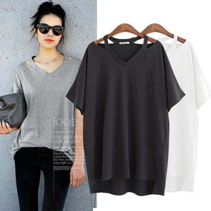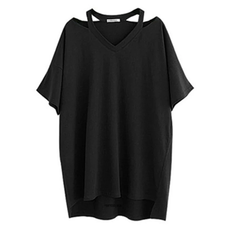 Женская большая футболка размера плюс 7XL 140 кг, черный топ, Женская свободная футболка, летняя футболка для женщин с V-образным вырезом